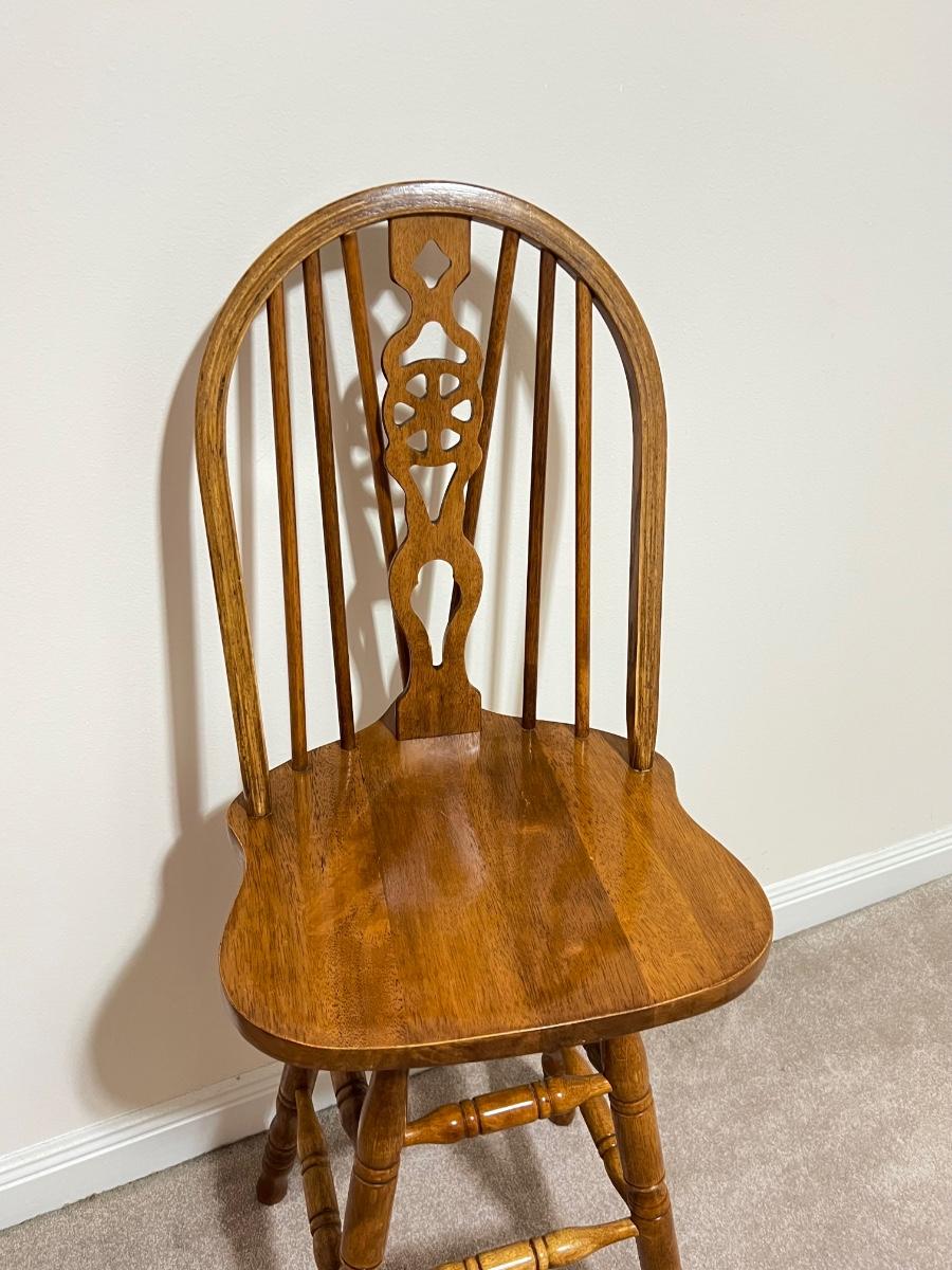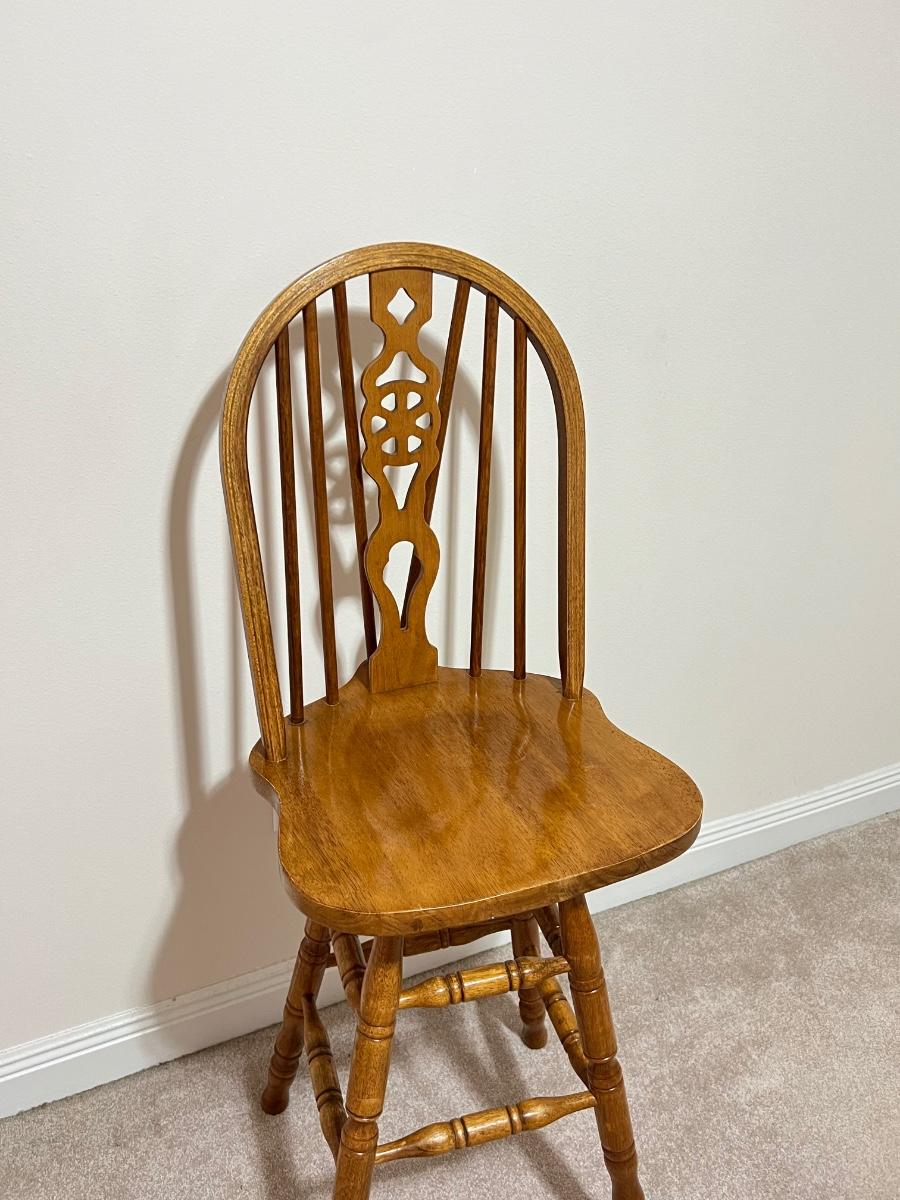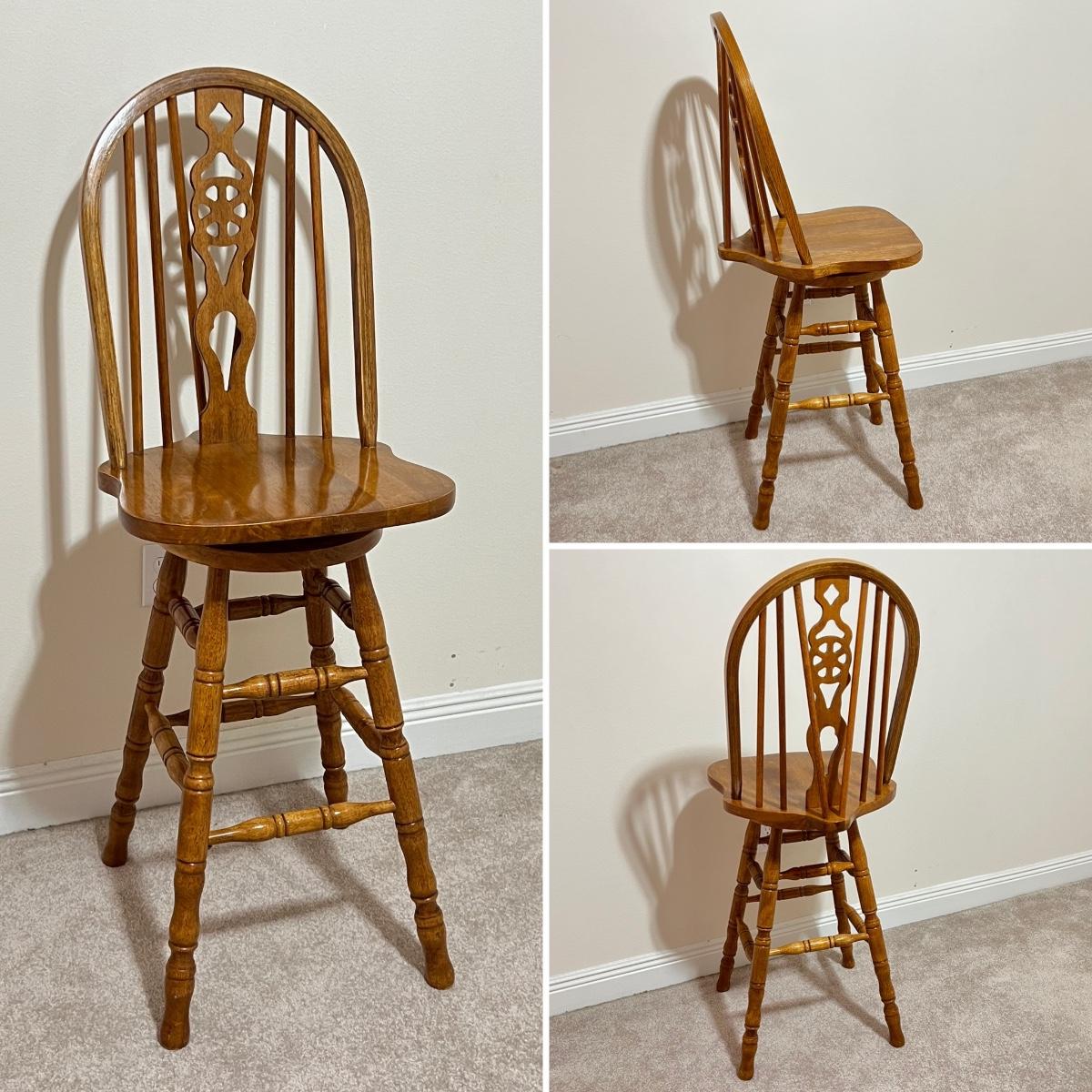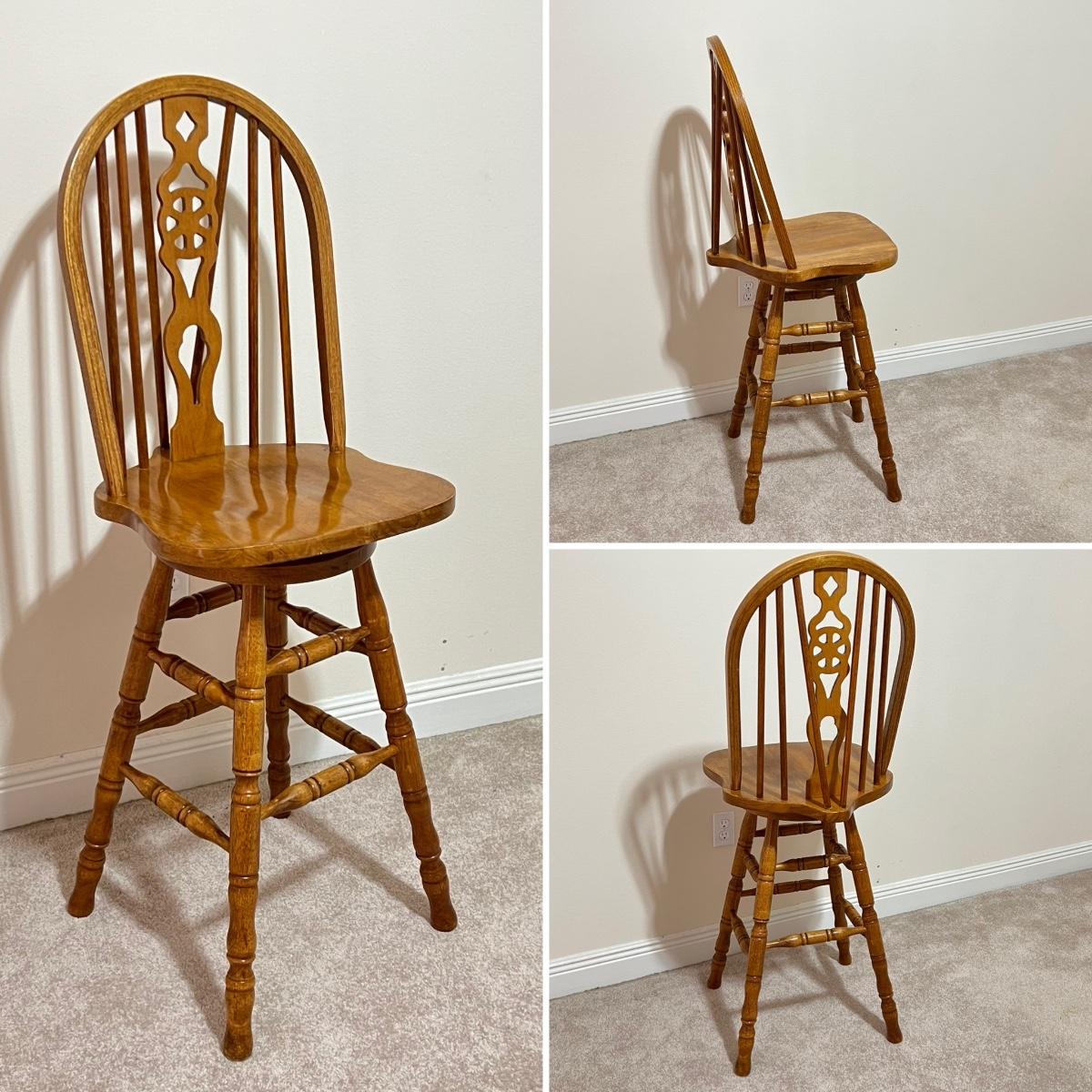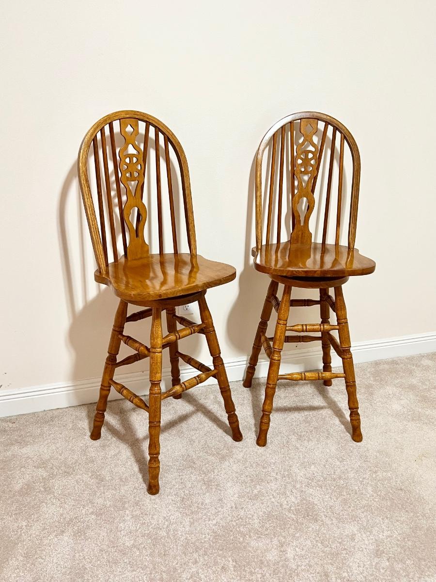 Pair (2) ~ Solid Oak Swivel Bar Stools