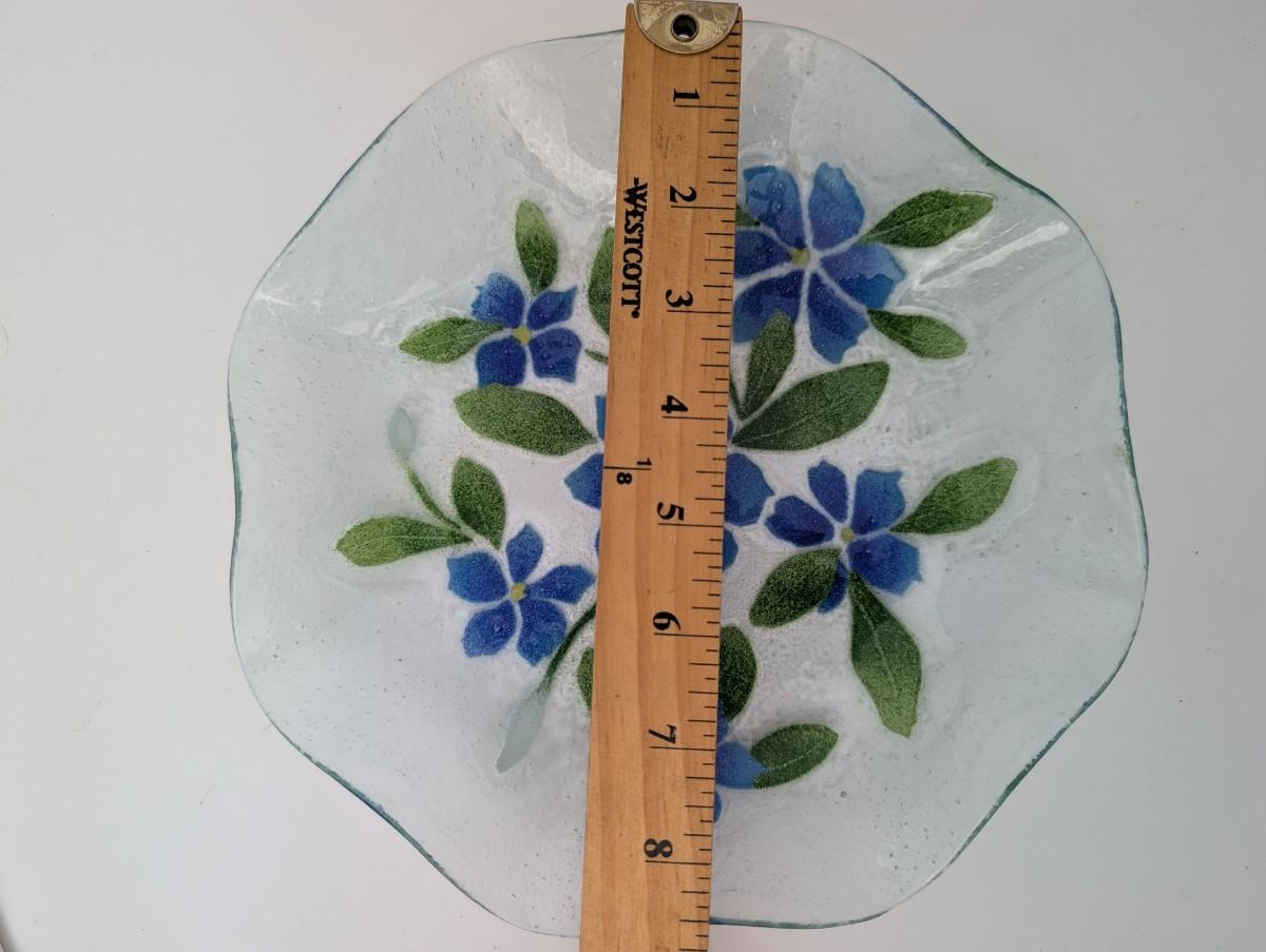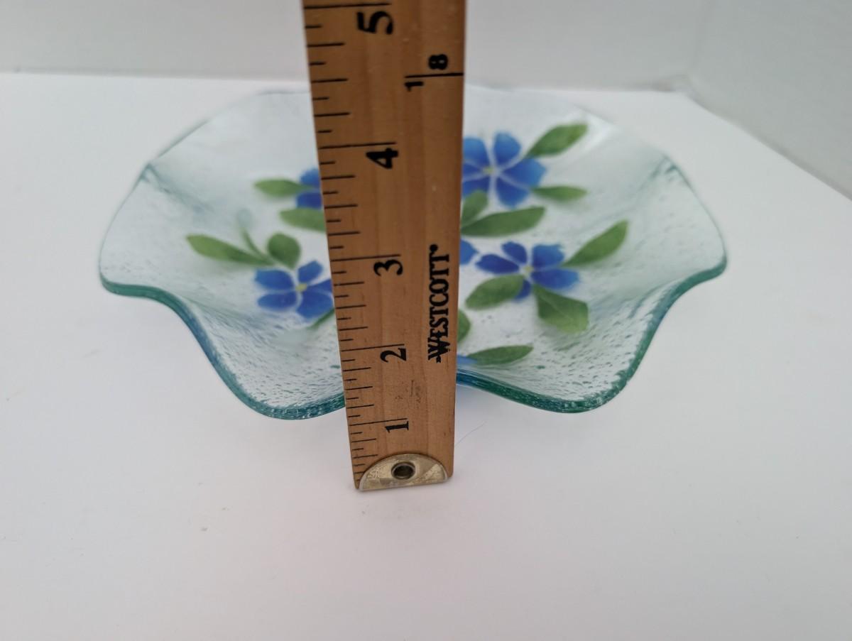 Sydensyryker Fused Glass Bowl Blue Flowers and Green Leaves Art Glass Dish