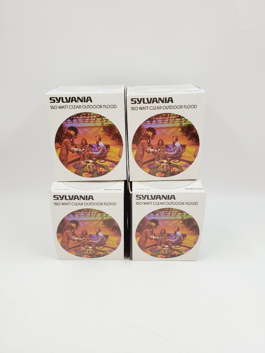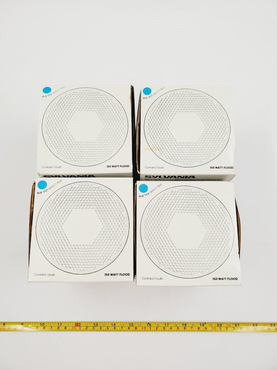 4 Sylvania 150 watt clear outdoor floor lamp bulbs, with box. Untested