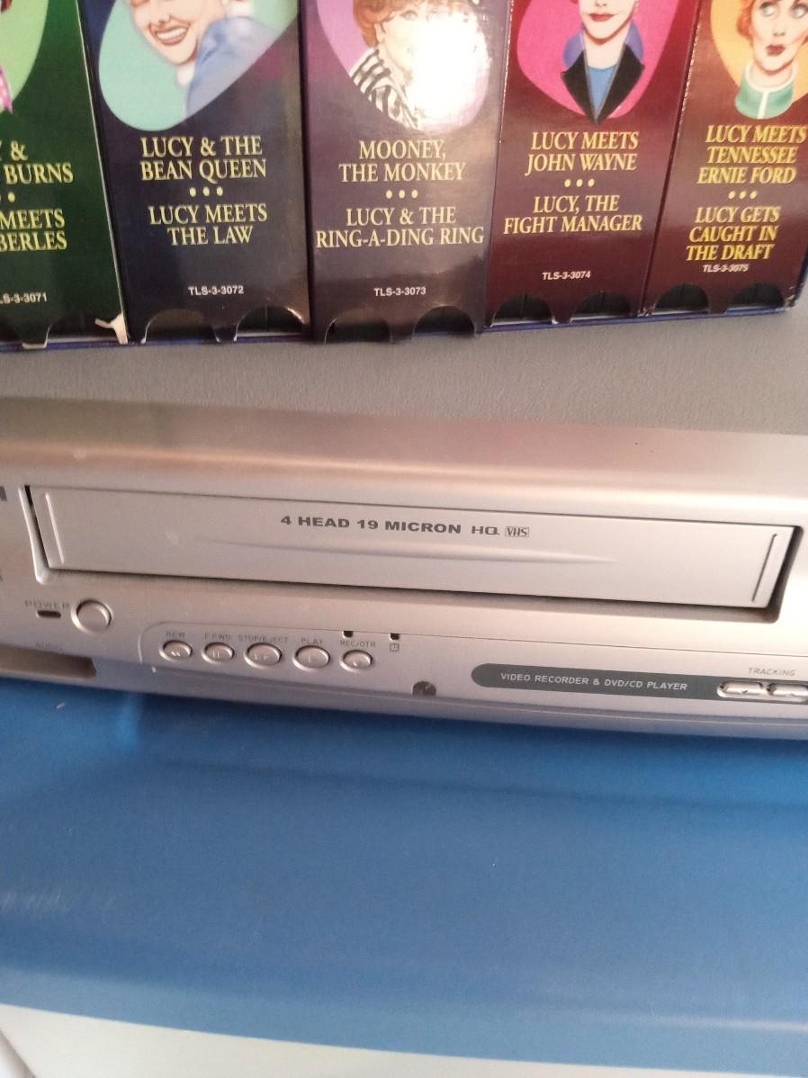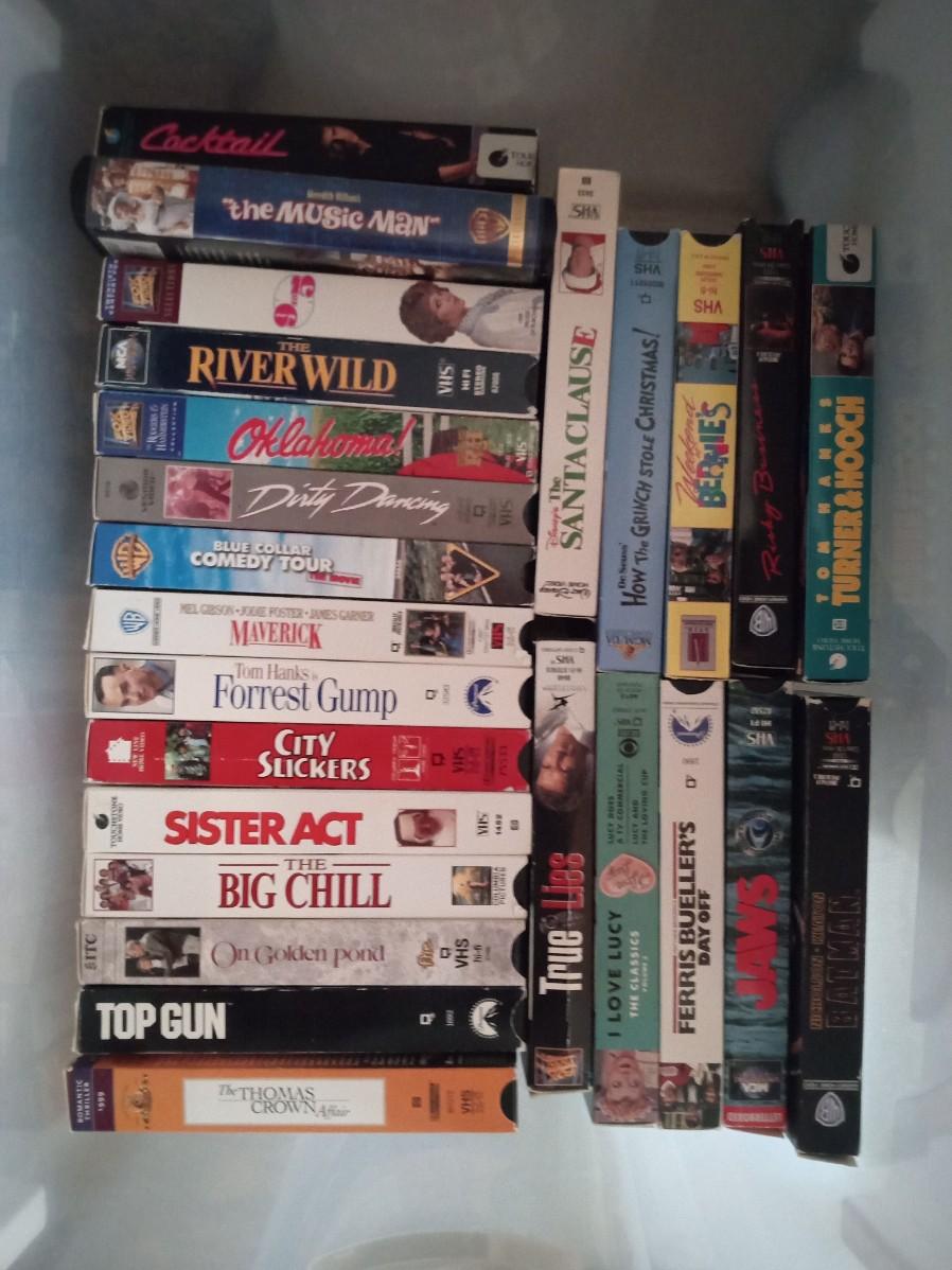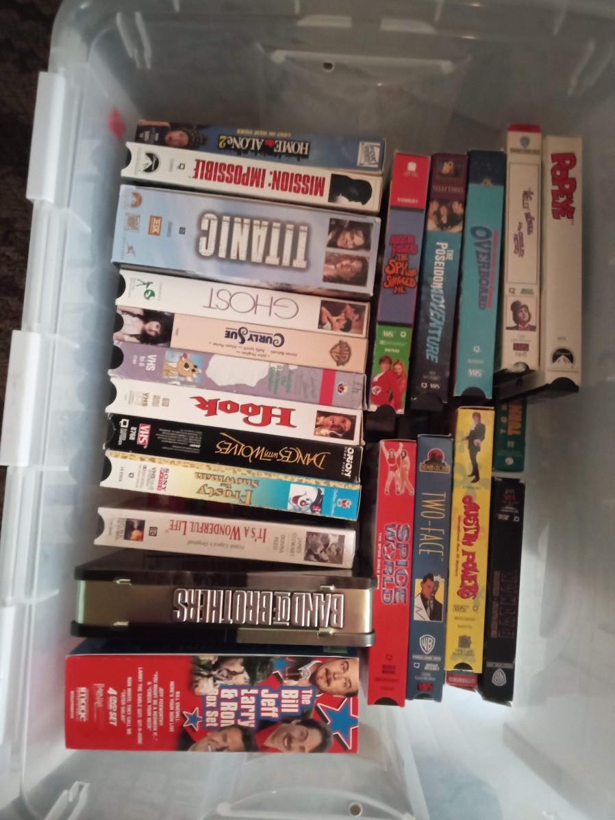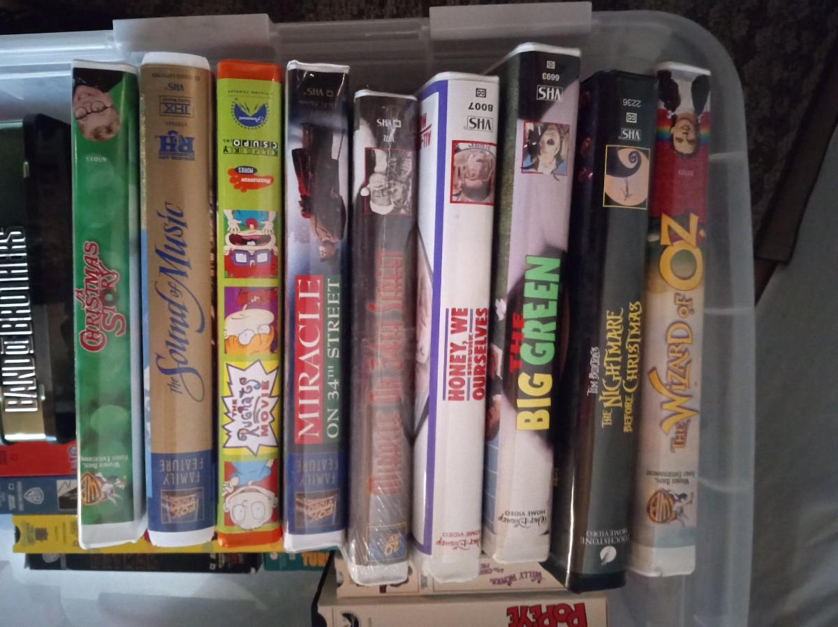 SYLVANIA COMBO VHS/DVD PLAYER WITH REMOTE AND TOTE FULL OF VHS MOVIES