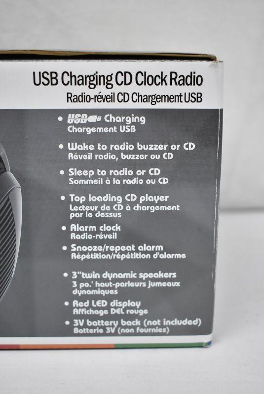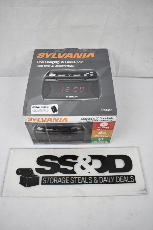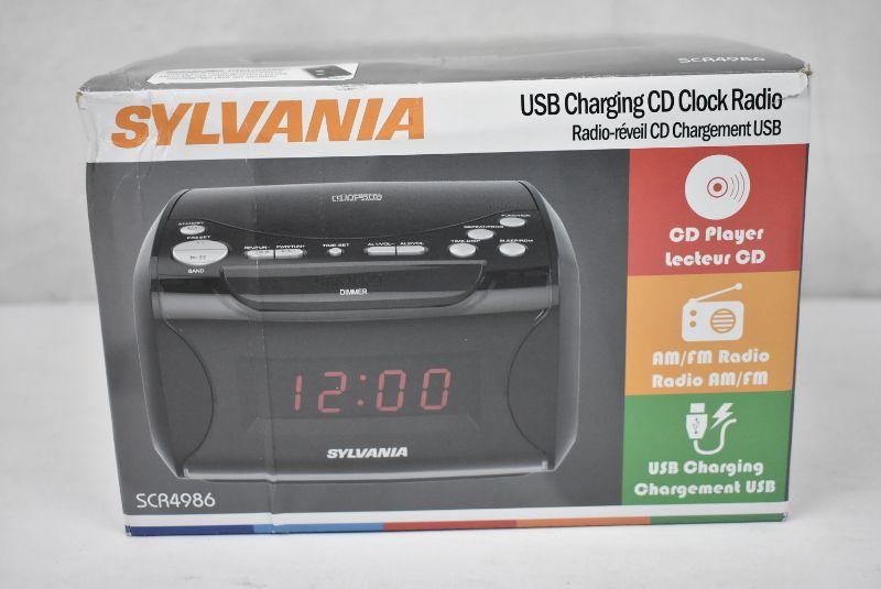 SYLVANIA SCR4986 USB-Charging CD Dual Alarm Clock Radio, $33 Retail - New