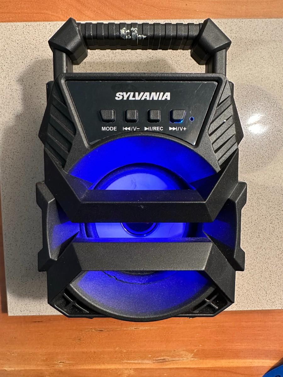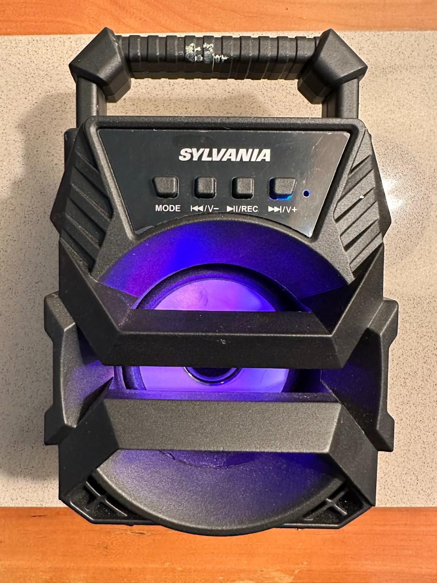 Sylvania Speaker with light - access to usb port, TF card, dc 5v, aux cable input