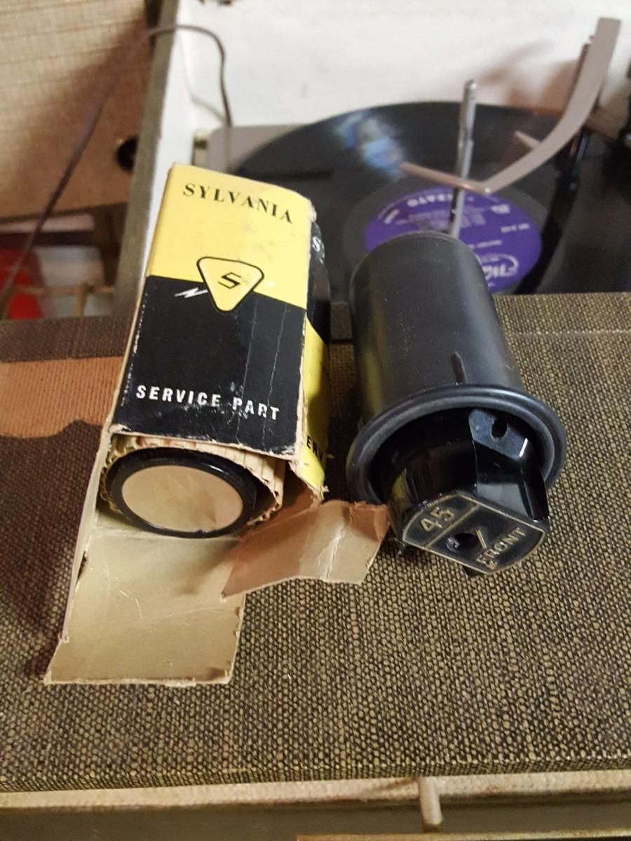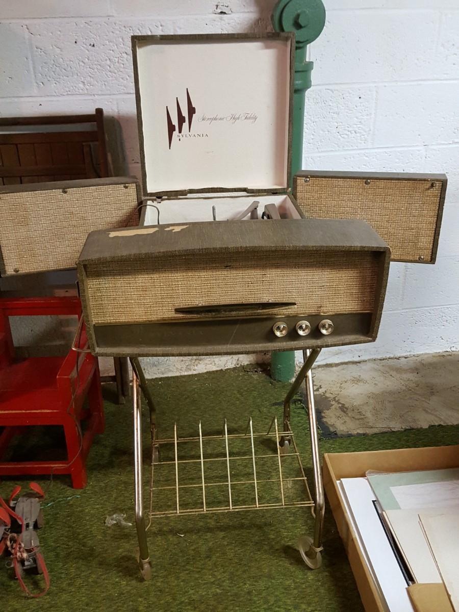 Sylvania Stereophonic Record player & Mid Century Metal Stand