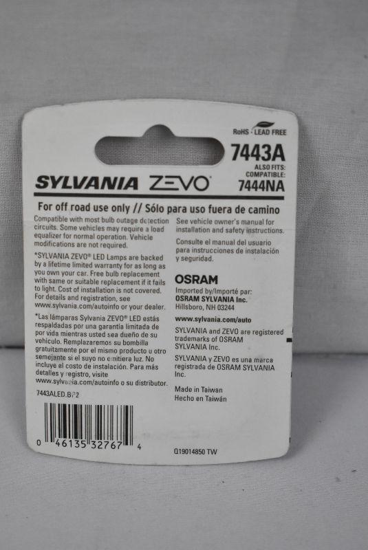 Sylvania Super Bright LED For Off Road Use Only. ZEVO2 7443ALED.BP2 EN. Open Packaging. Untested