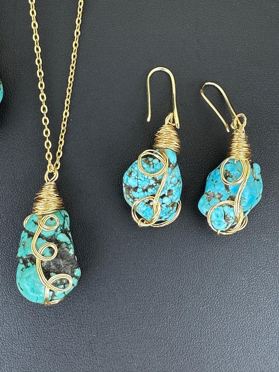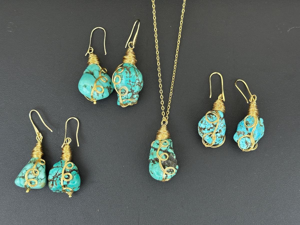 1. Synthetic Turquoise Necklace And Earring Set Lot