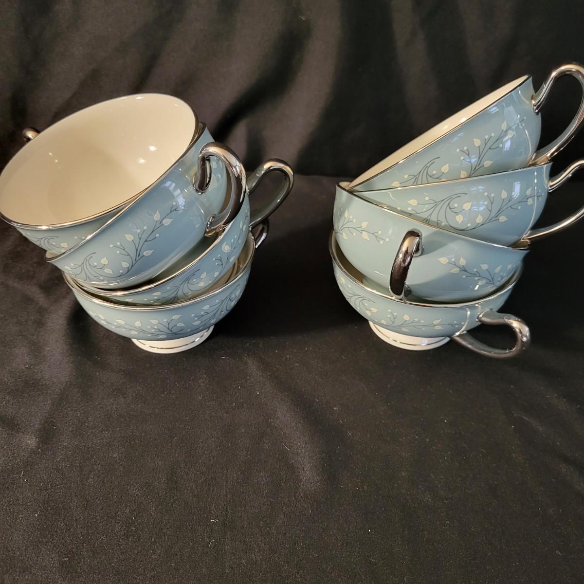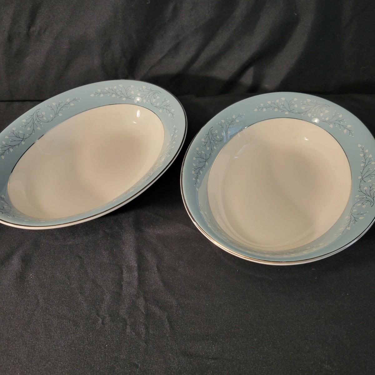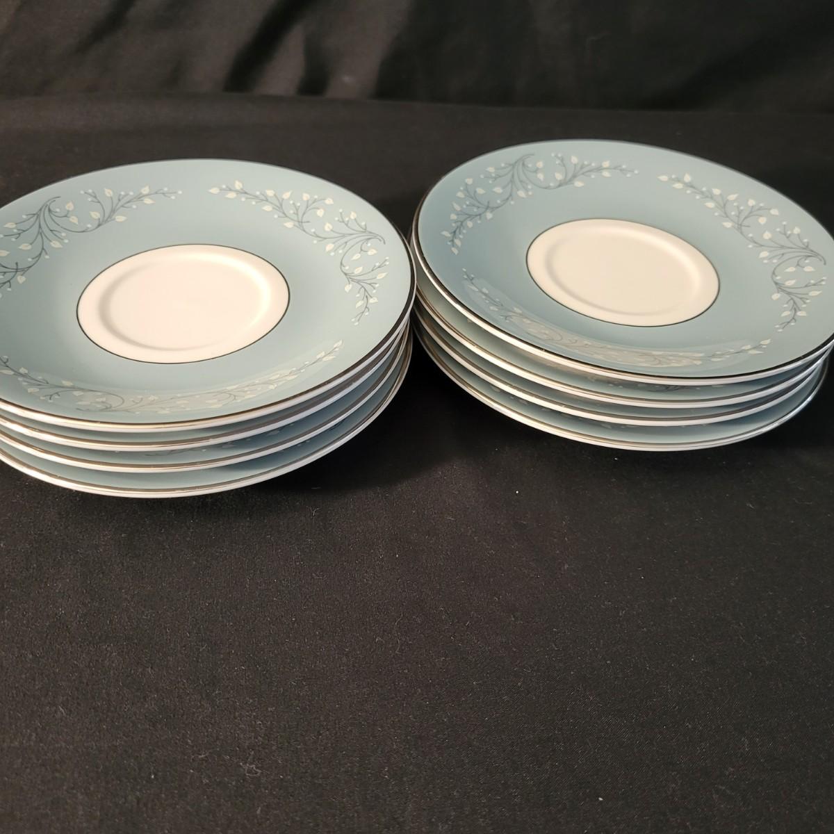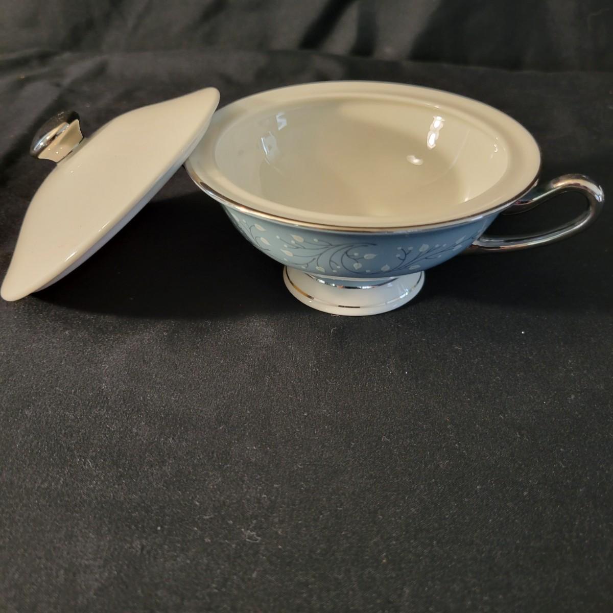 A four piece, eight place setting china set made by Syracuse China "Minuet" pattern in excellent condition that includes additional pieces. Included is a cream bowl, a sugar bowl, a gravy boat, two large bowls and a serving plate. Serving plate measures approximately 14" x 10.5 " Local pickup only