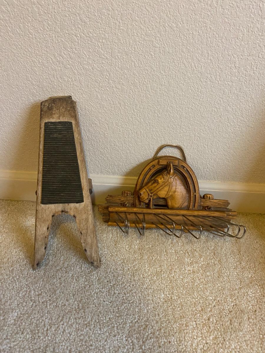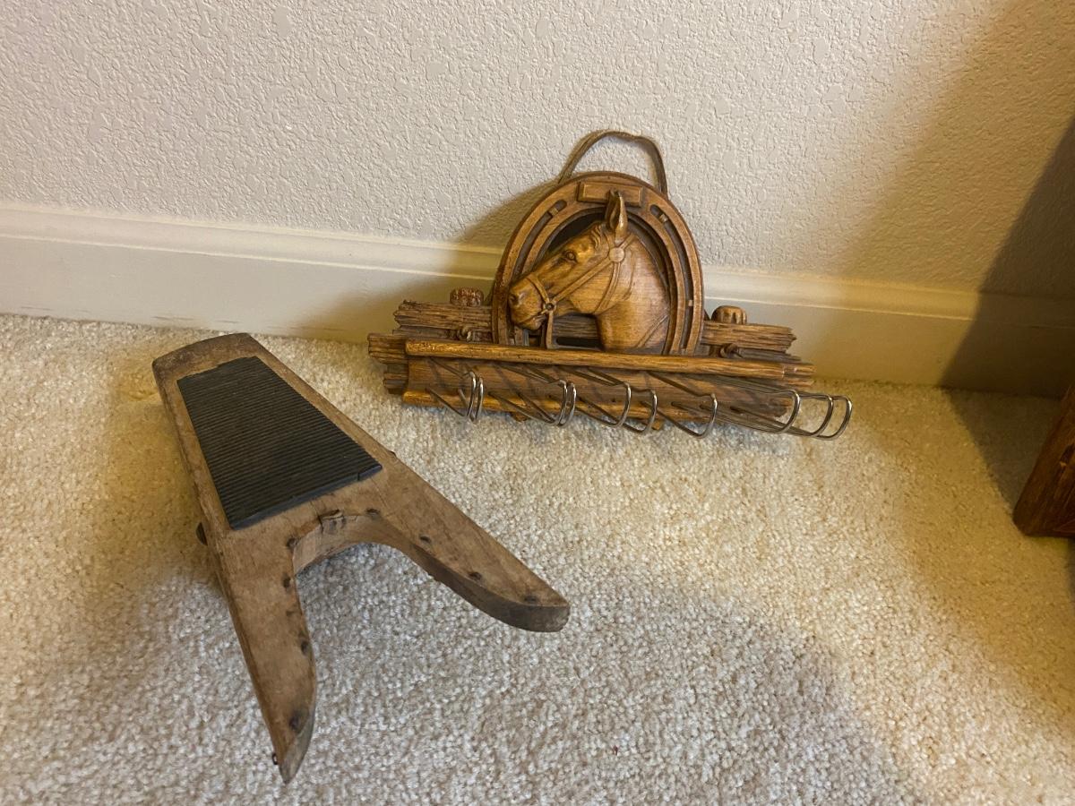 SYROCCO BURNWOOLD HORSE TIE RACK/BELT HANGER AND BOOT JACK