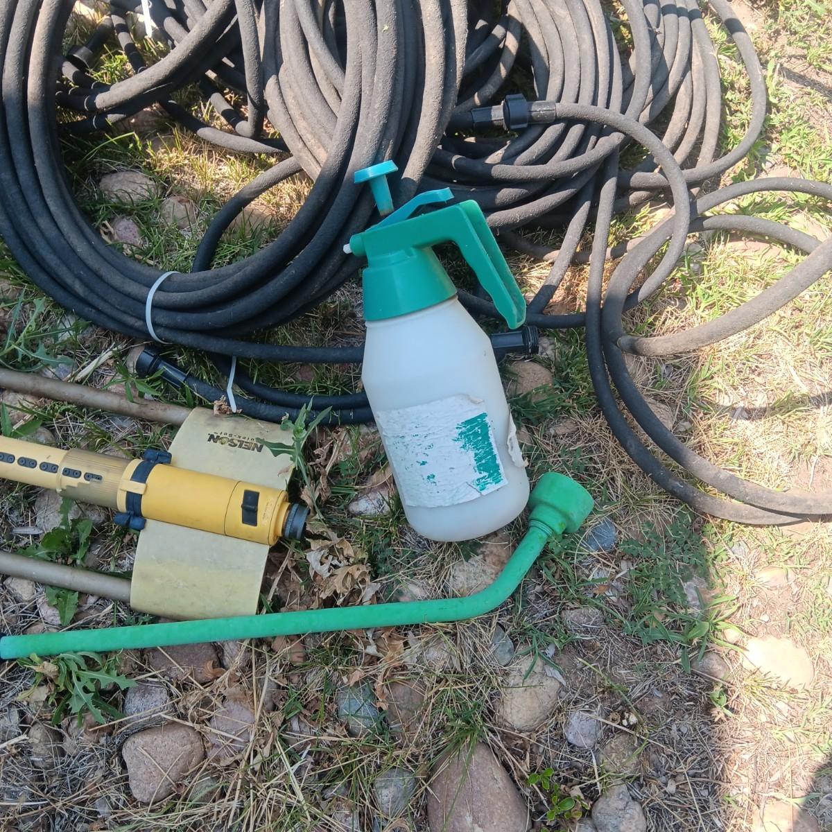 SYSTEM HOSE, SPRINKLERS AND WEED SPRAYER