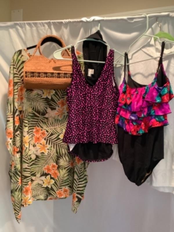 T - 1215 Ladies Clothing Lot - Bathing Suits & CoverUps Size 12/14 & lG