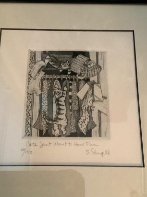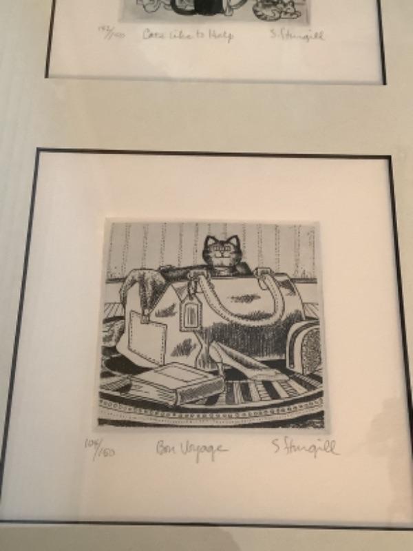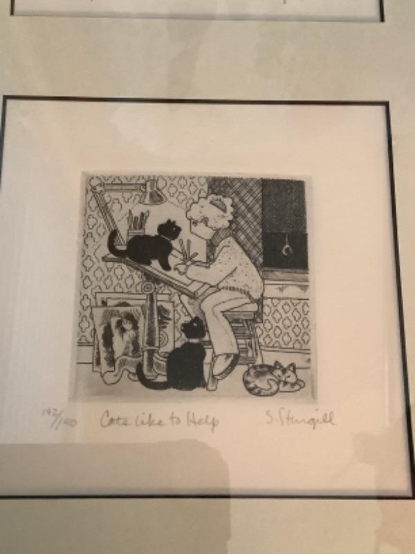 T - 321  Three Signed & Numbered by S. Sturdily, Black / White Cat Themed Sketches