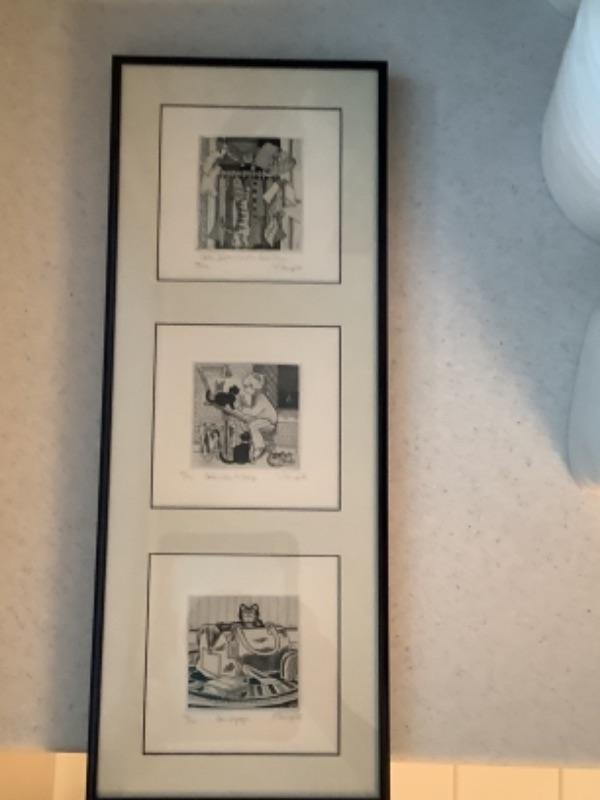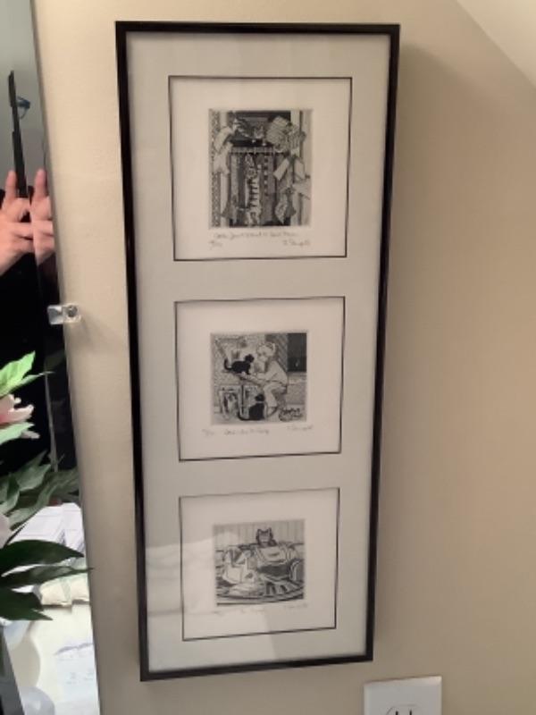 Three in 1 Frame, Signed & Numbered Black / White Sketches by
