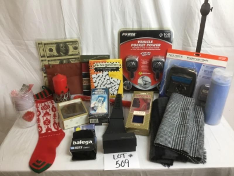 Scarves,Socks, Leo Laser, Books, Plastic Cups, Toasties Socks, Wooden Coasters, Candle, Long Shoehorn, Ice Scraper and more