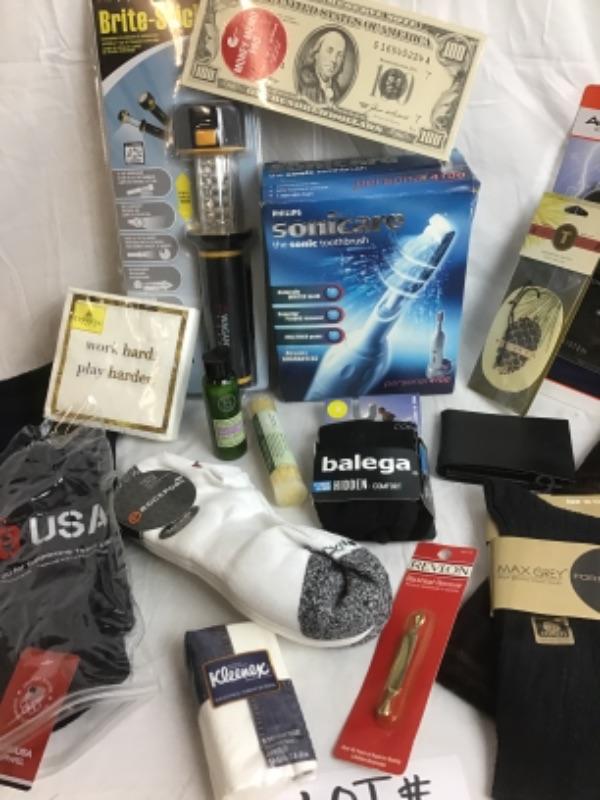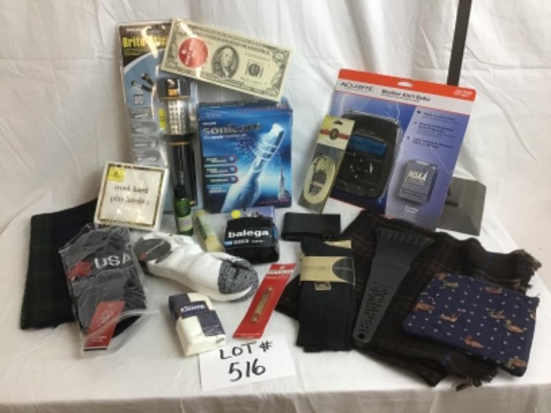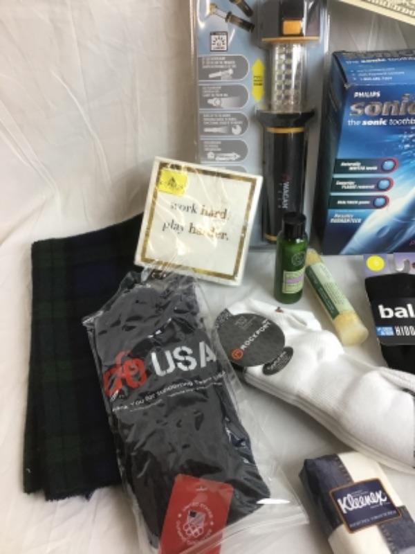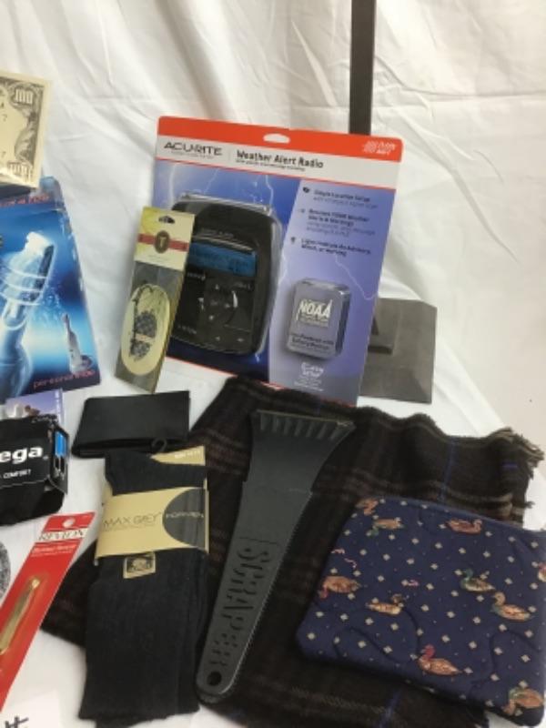 Scarves, Socks, Napkins, Fa Ian Tools, Ice Scraper, Weather Alert Radio, Sonicare, Brite-Stick XT