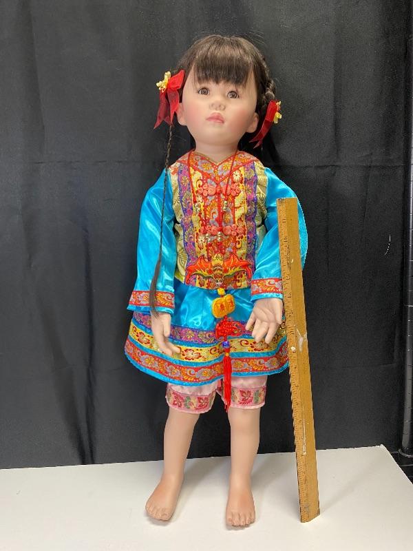 2011 Marie Osmond doll "Elephant Fun". Limited edition #93/300. 24" doll will stand on own, can not be seated. In good condition. Signed on back of neck. Unfortunately she is missing her blue slippers and red elephant.