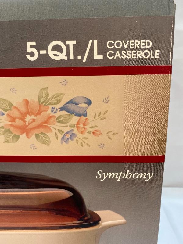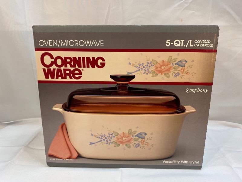 Corning Ware Covered 5 Quart Casserole in Symphony Pattern NEW UNOPENED BOX