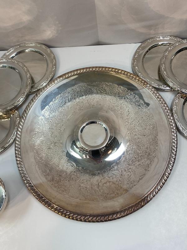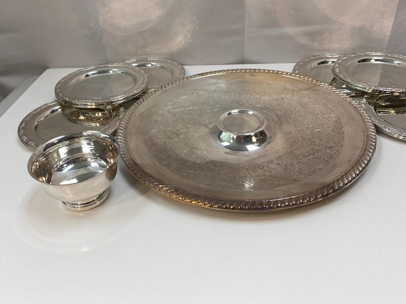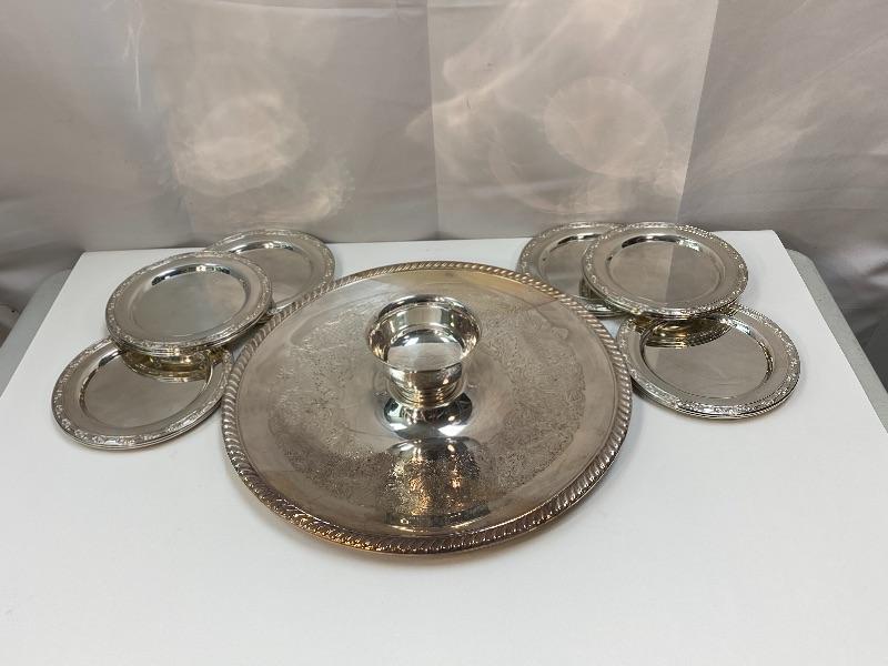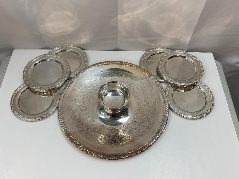 Silver Plate Chip & Dip Serving Tray and Appetizer Plates YD#022-0381