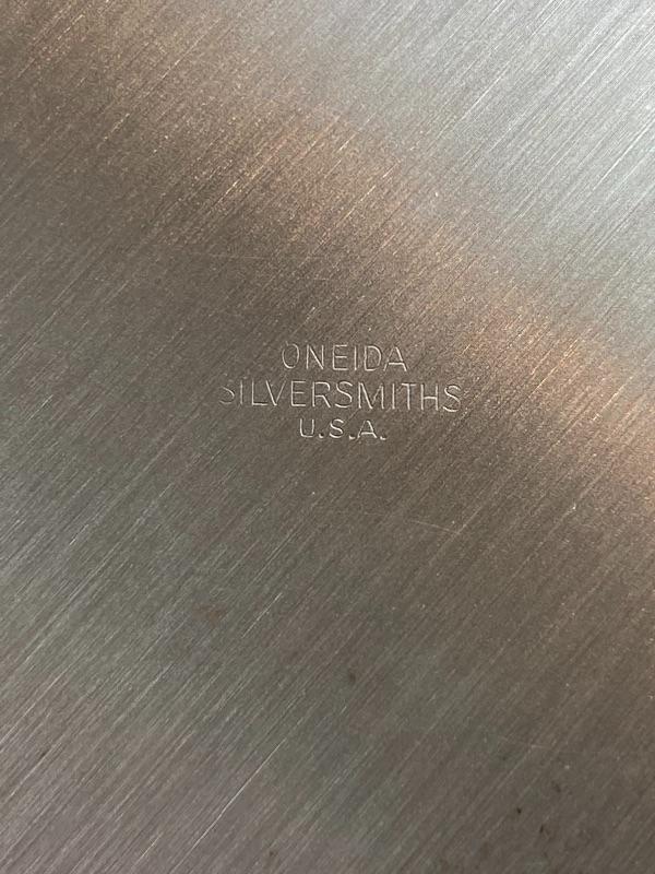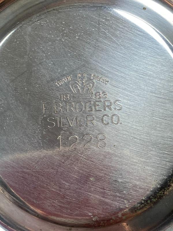 Silver plate chip and dip serving tray and small appetizer/dessert size plates. Plates are Oneida, about 6" size. Tray has removeable bowl, made by FB Rogers. All in good condition.