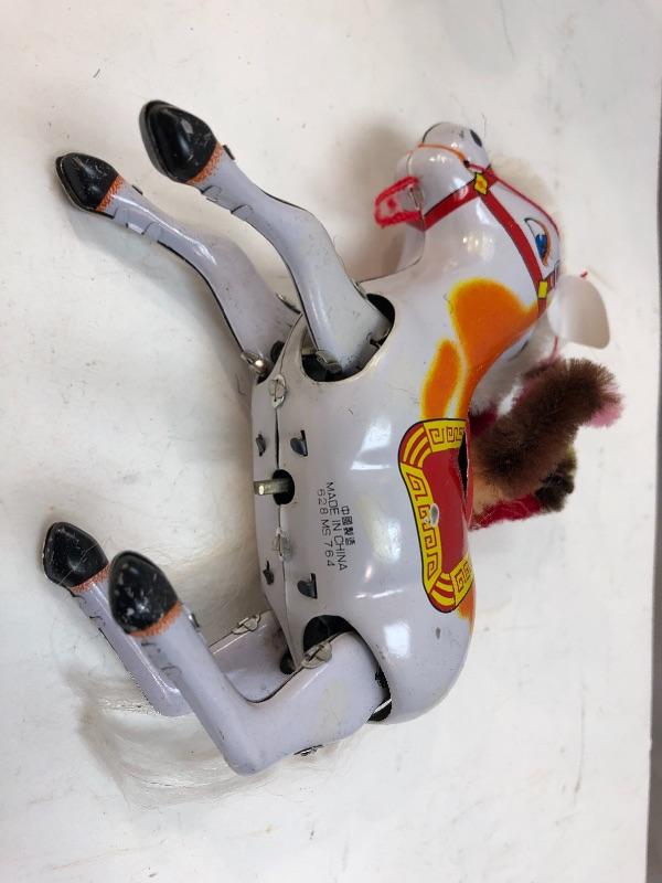 Vintage Pipe Cleaner Monkey Riding a Pony Mechanical Tin Toy China YD#020-1220-00567
