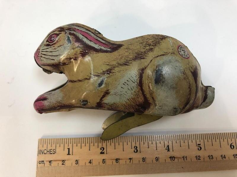 Vintage Mechanical Tin Toy Jumping Rabbit by J Chein & Co
