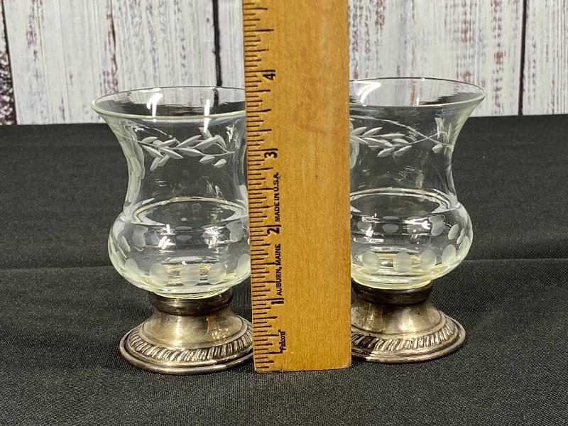 Pair of Princess House Crystal Sterling Silver Based Tea Light Votive Candle Holders