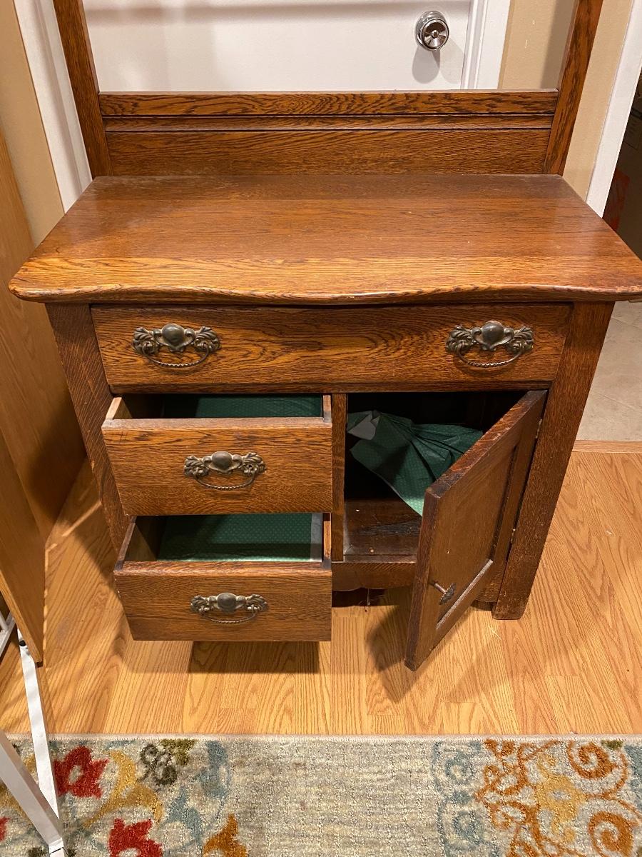 Vintage Oak Child Size Youth Dressing Wash Basin Dresser Table