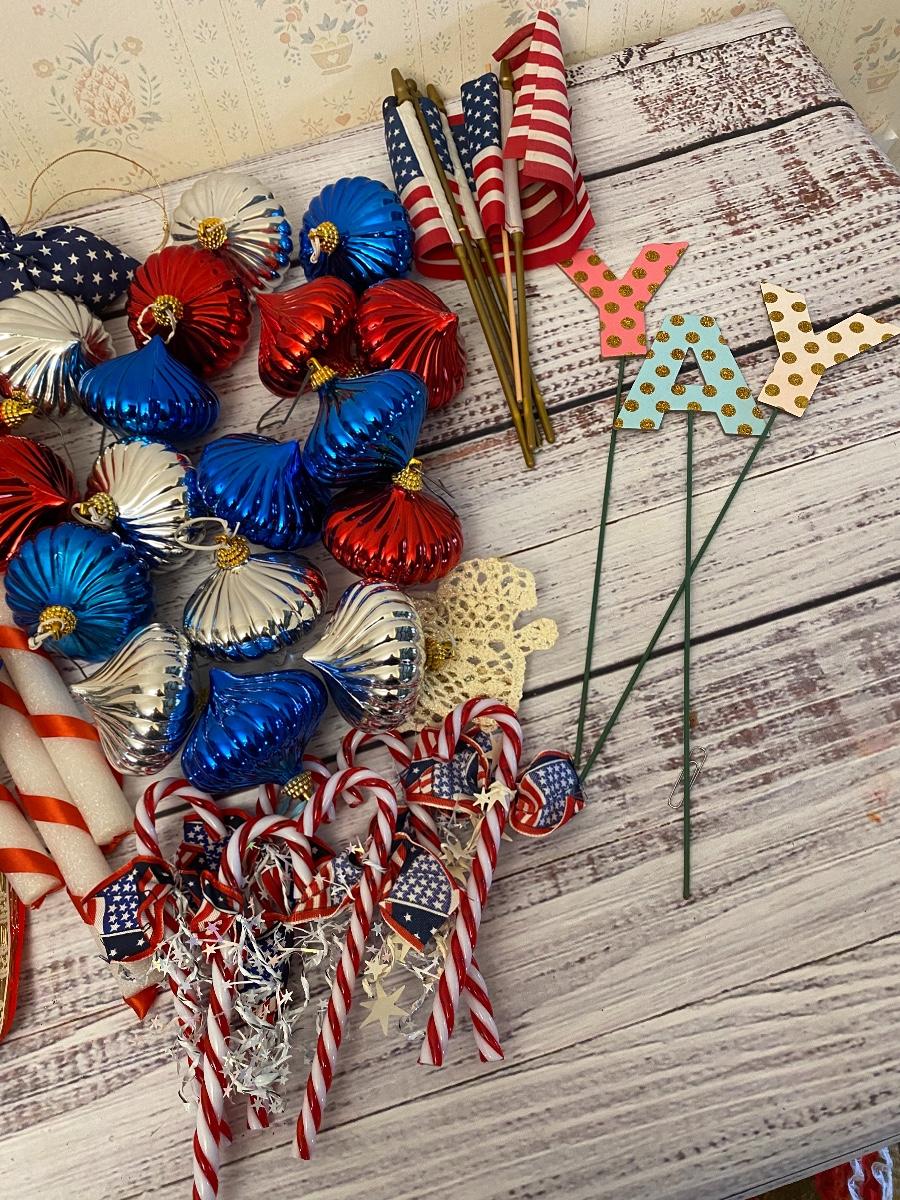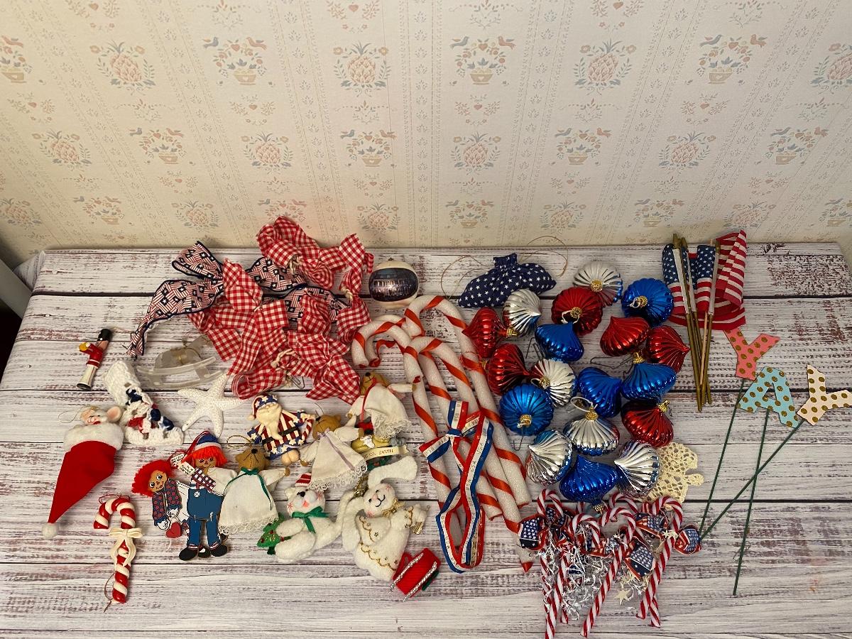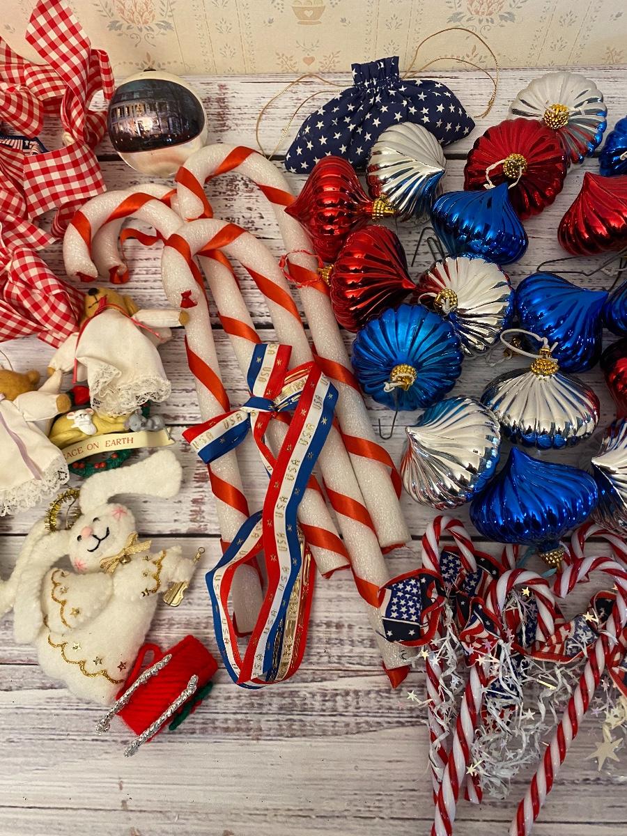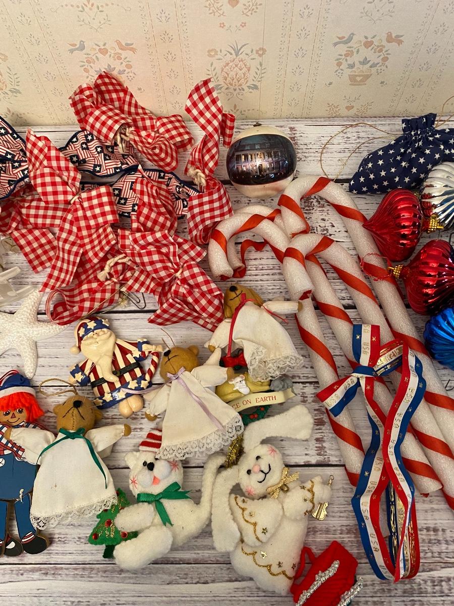 Add some patriotic flair to your holiday tree with this red, white , and blue lot. Everything photo'd included in this lot.