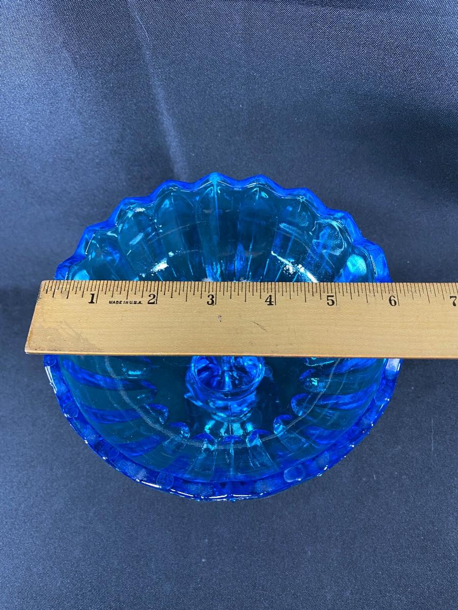 Vintage Bright Blue Lotus Blossom Flower Pedestal Candy Dish Compote Indiana Glass