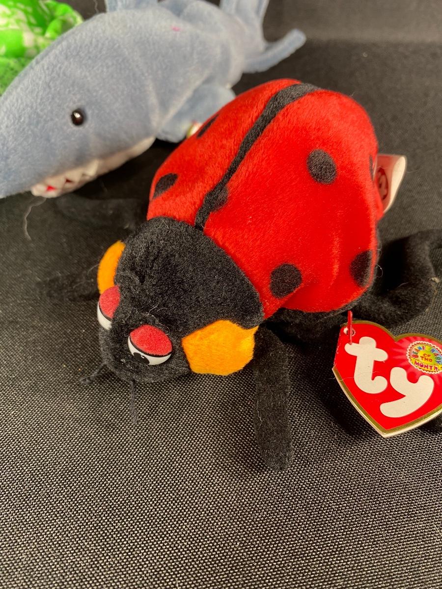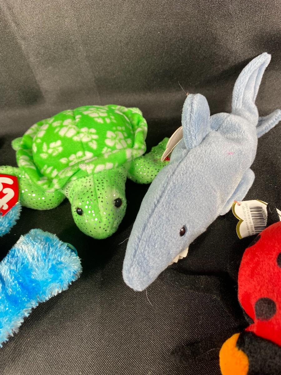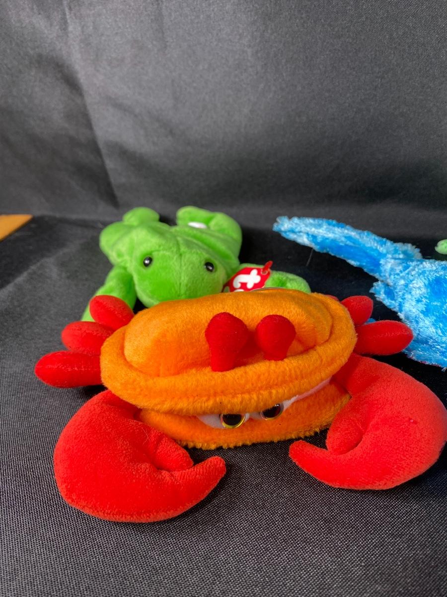 Lot of 6 Ty Beanie Baby plush animals. Sea life and garden creatures. Good condition. Crab is missing hang tag.