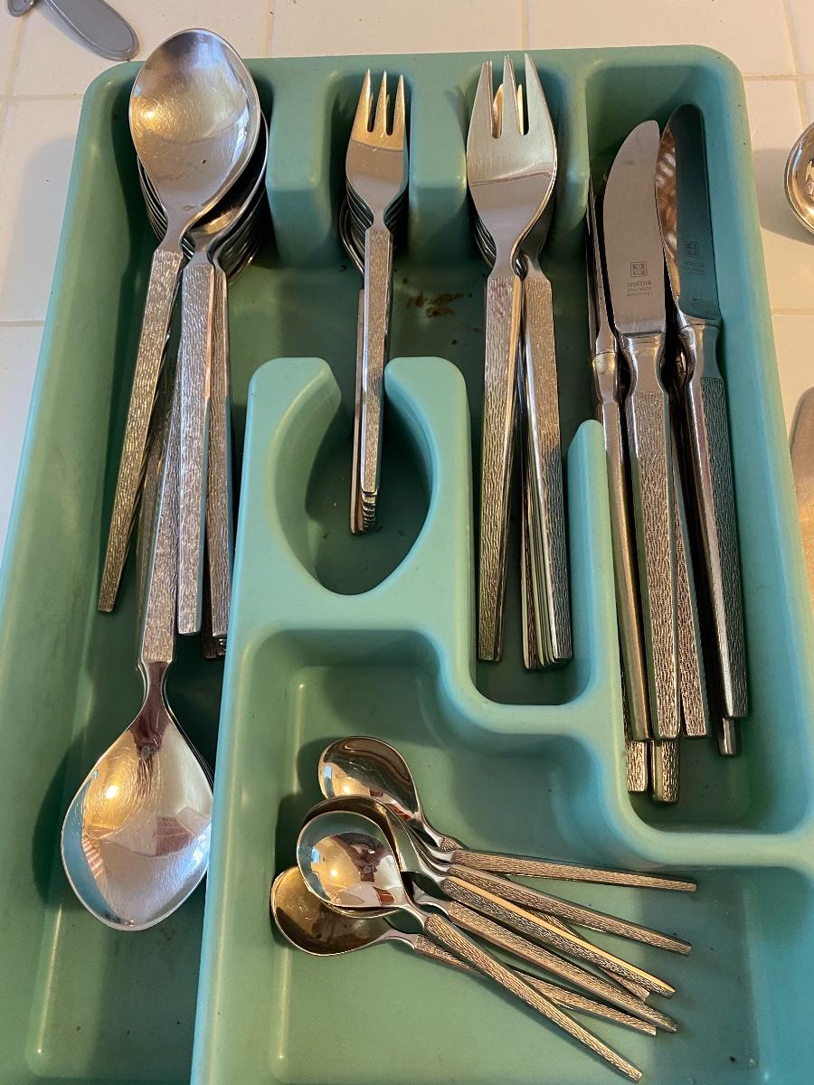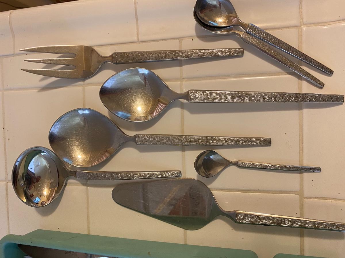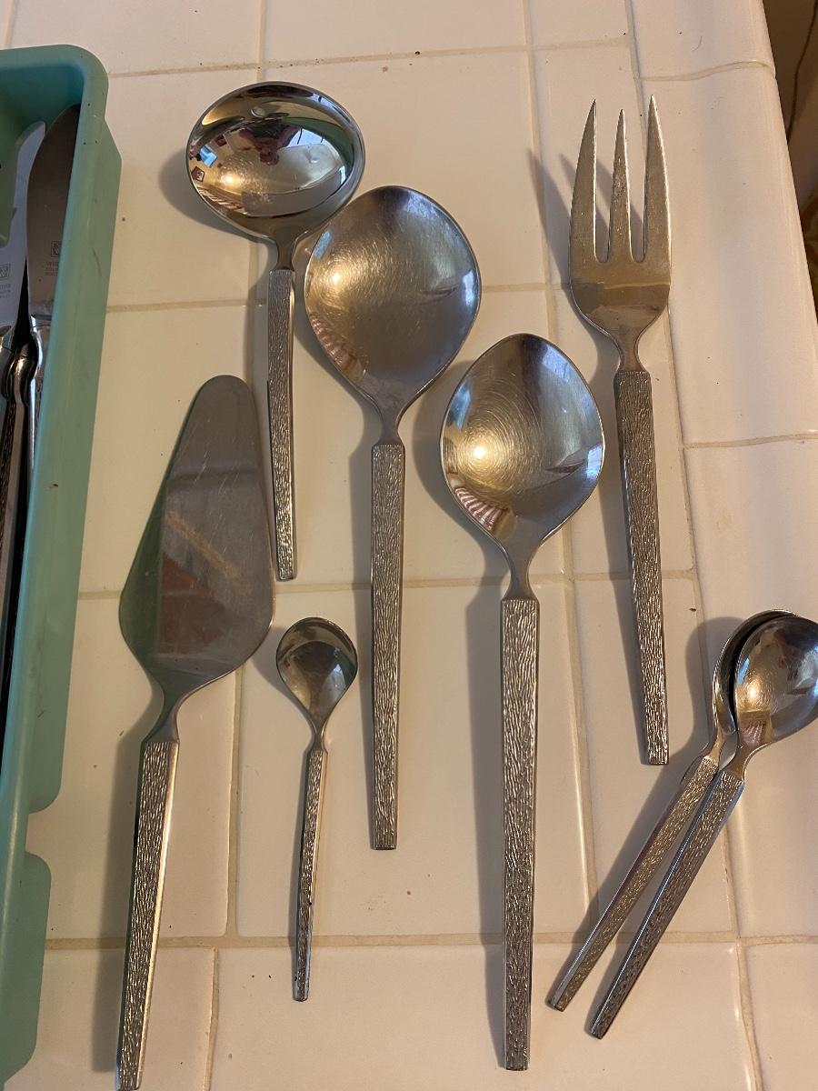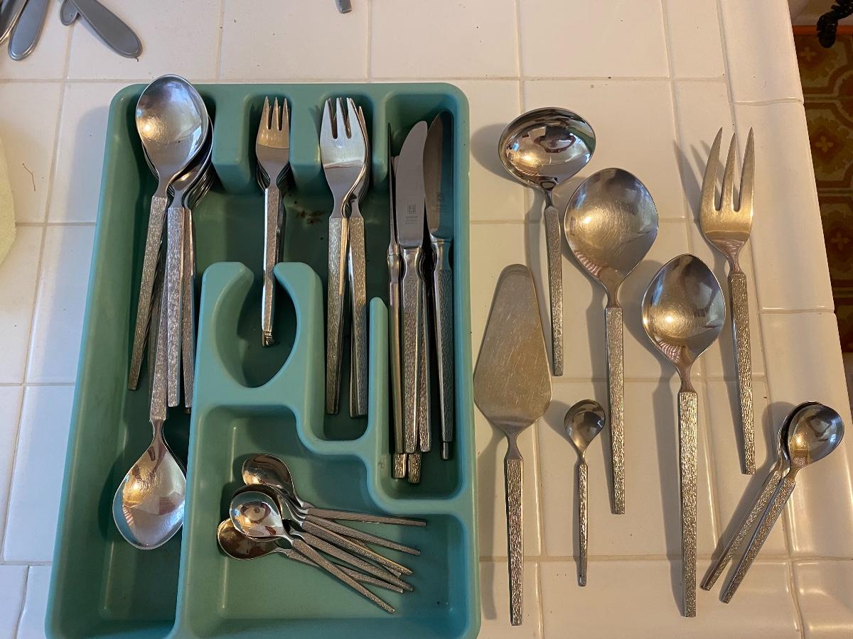 Large Mid Century Modern Flatware Set. Marked Wirths. Large set including serving pieces.
