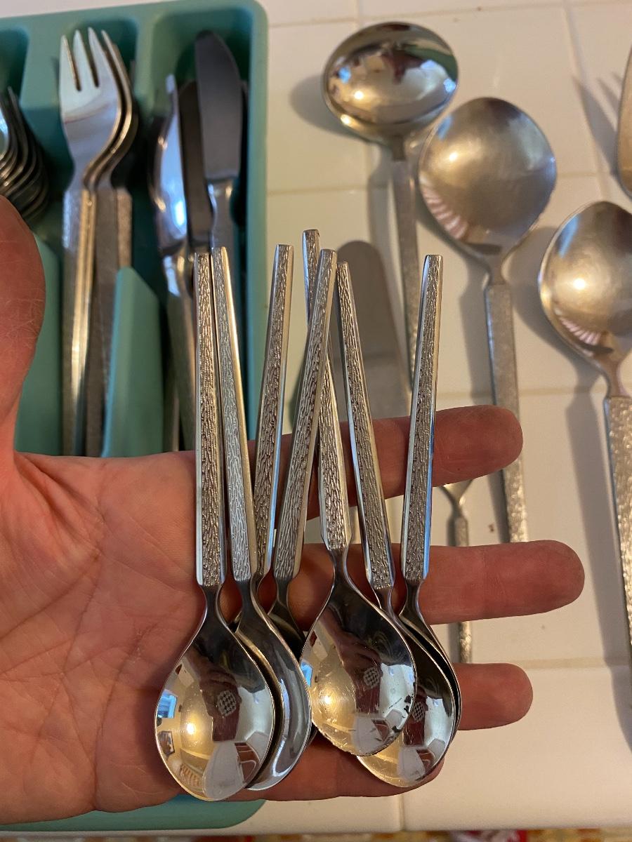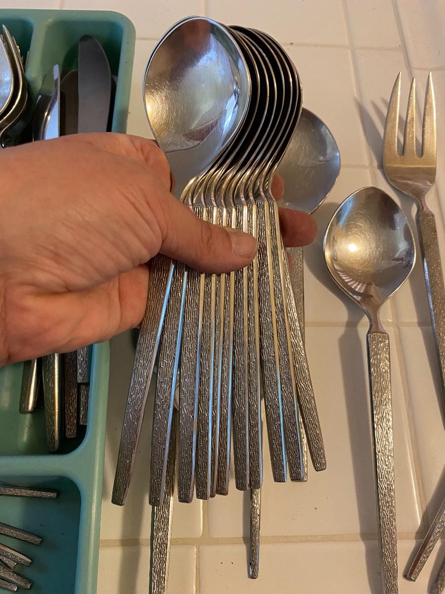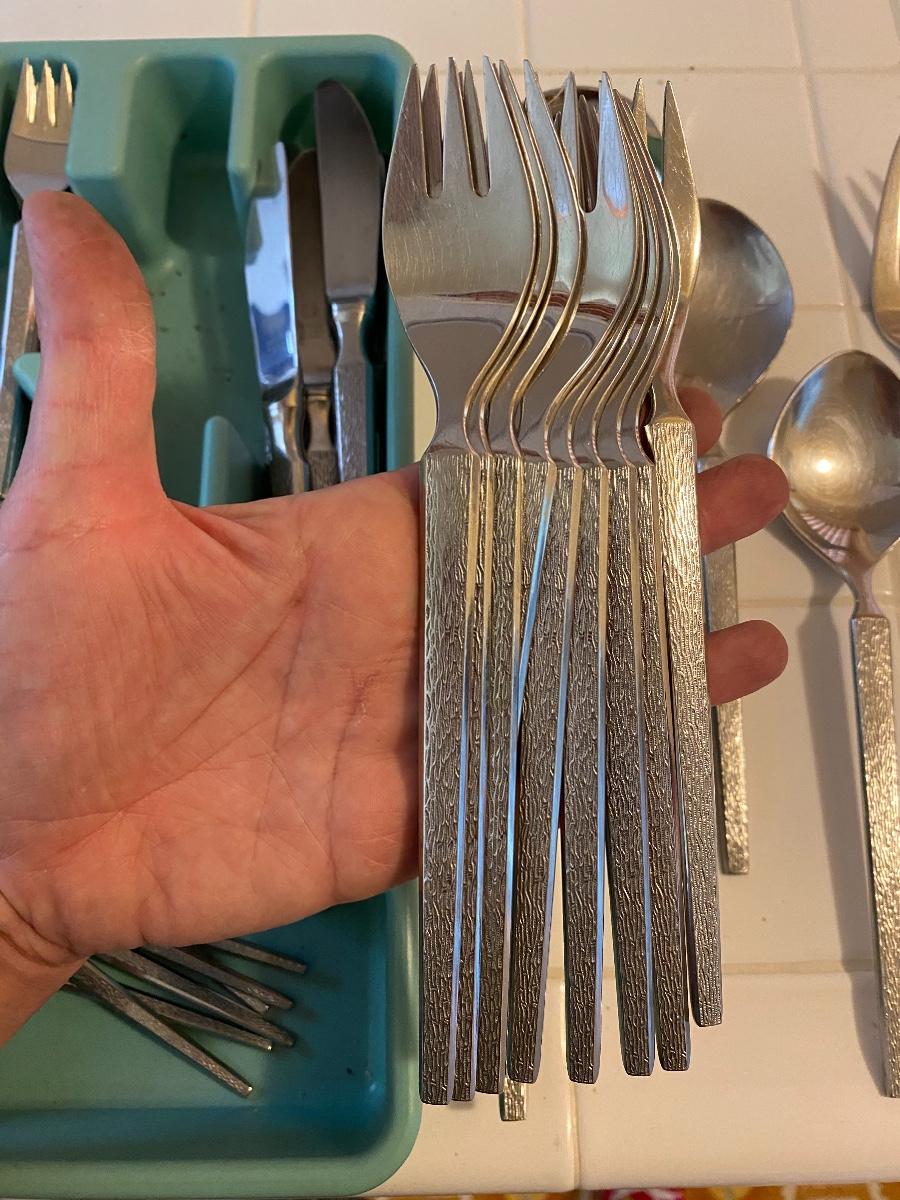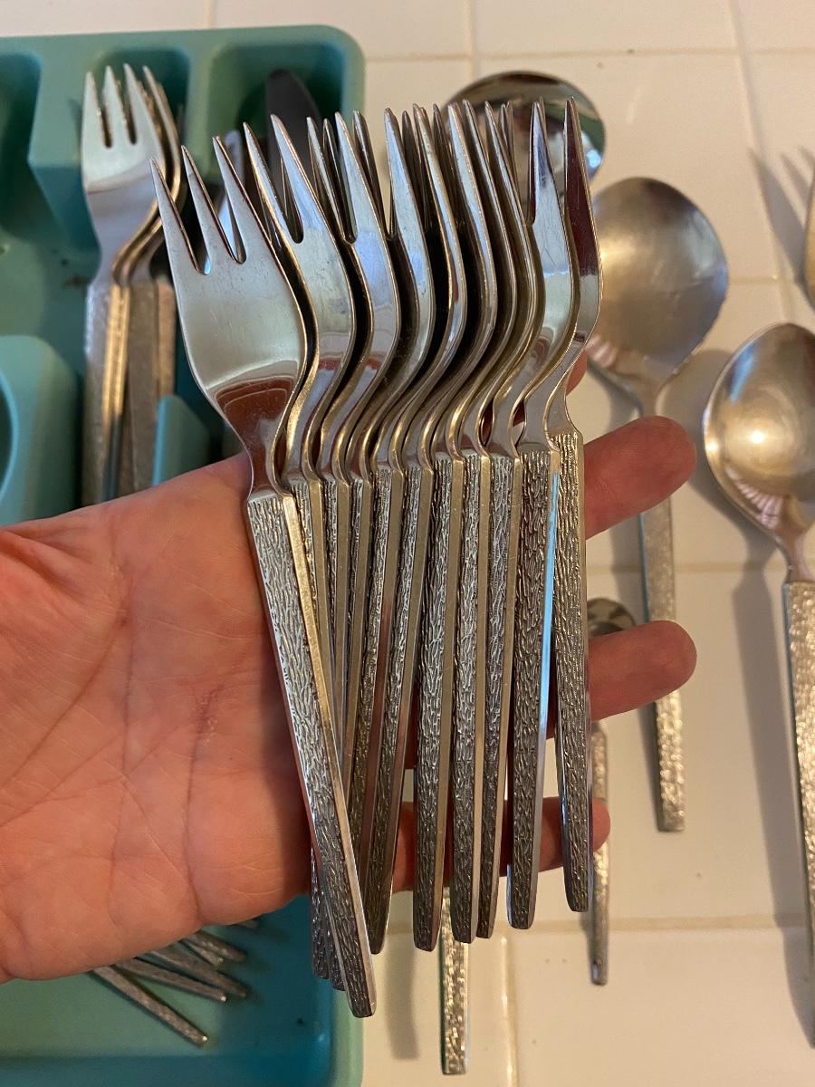 Large Mid Century Modern Flatware Set. Marked Wirths. Large set including serving pieces.
