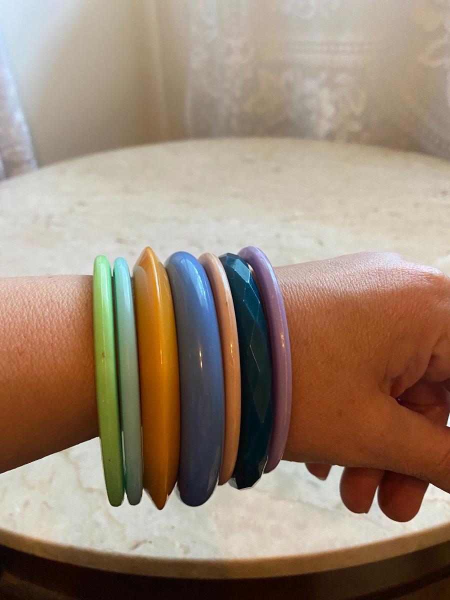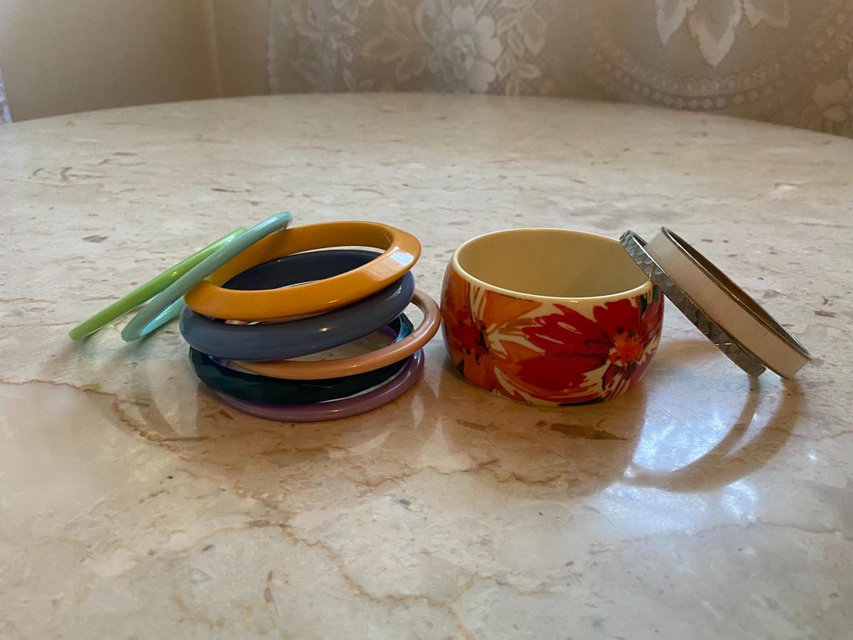 Vintage Plastic & Metal Bangle Bracelet Lot. Only two are metal. Good condition.