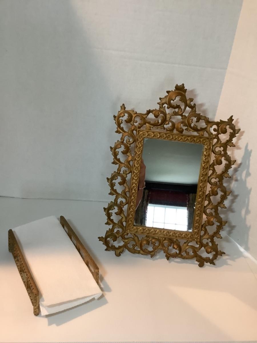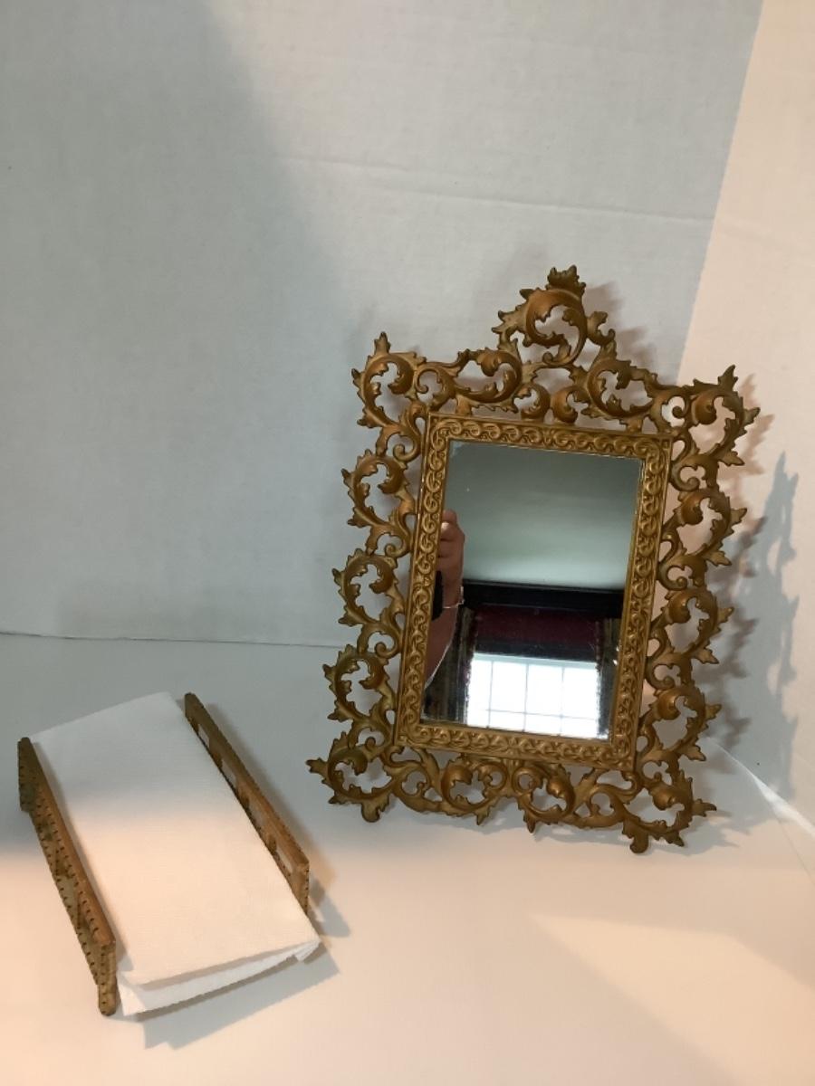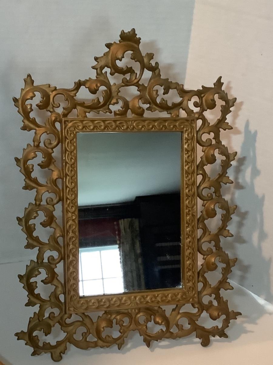 Victorian Gilt Cast Iron Stand up Mirror 12” Wide x 16” High