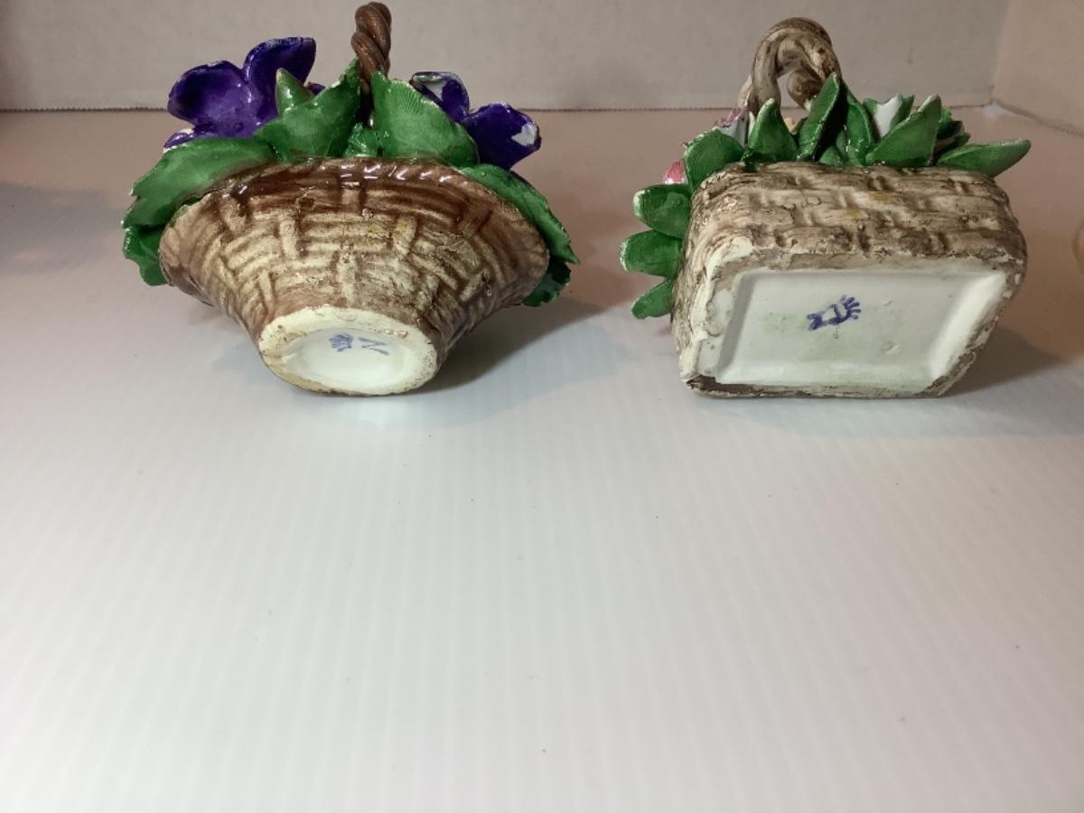 T. 843 Two Capidimonte Baskets & One Thumb Print Cranberry Glass Pitcher
