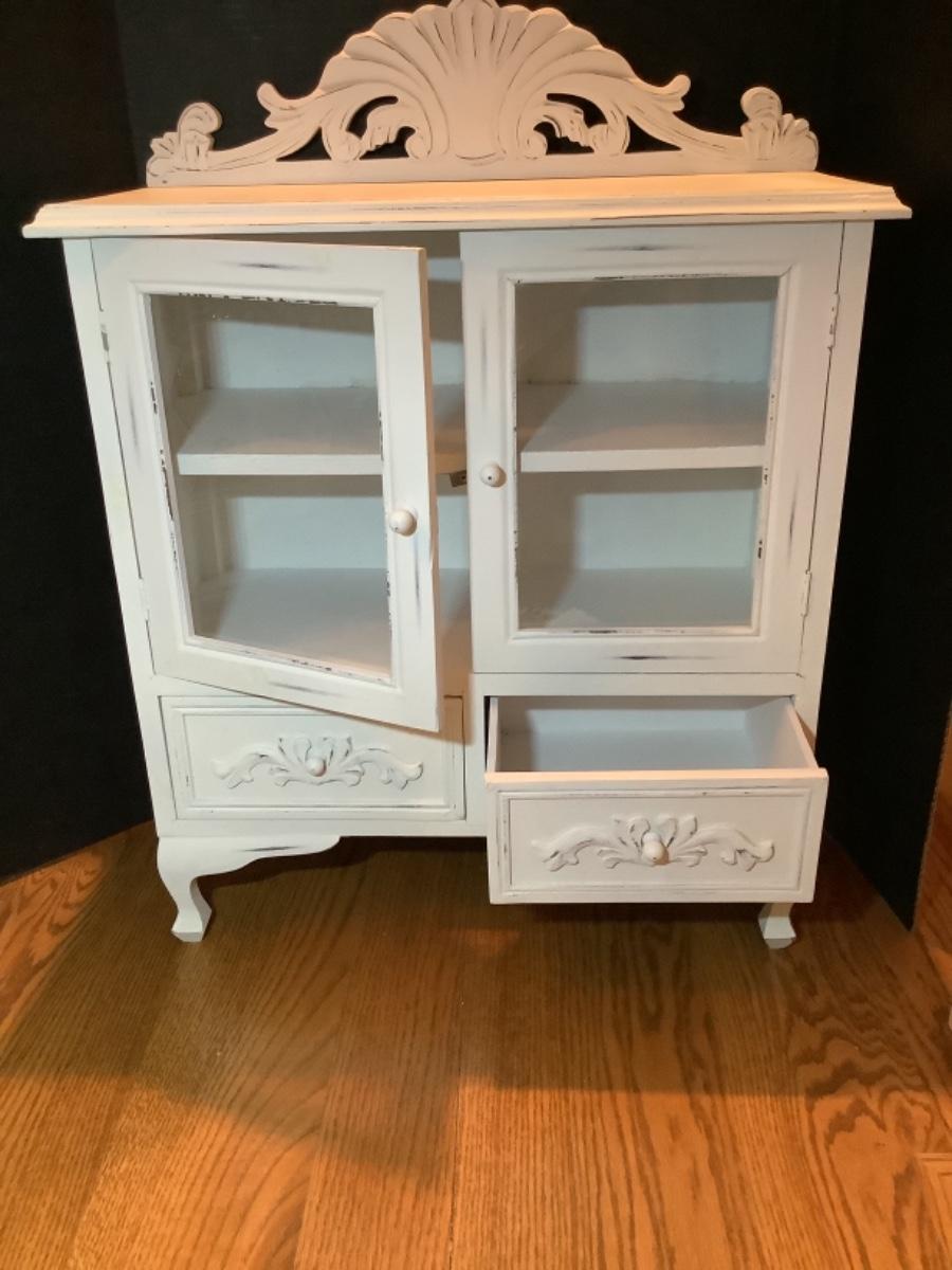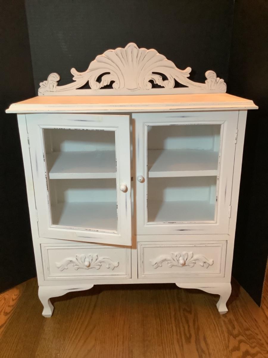 With 2 Glass Doors, ( 1 shelf inside ) & 2 Drawers