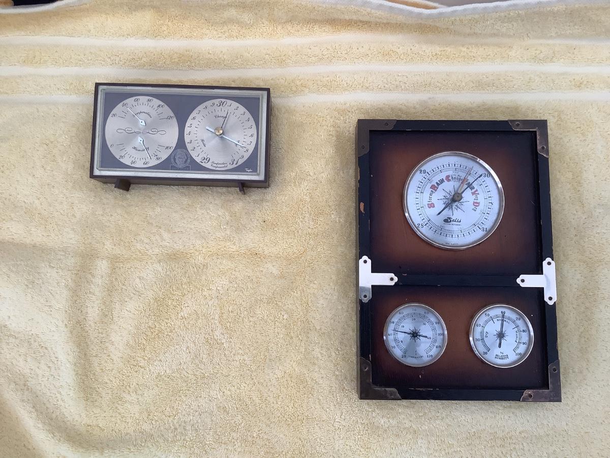 T - 973. Vintage Selsi Wooden Wall Barometer Thermometer Weather Station / Vintage Taylor Intrument Companies Weather Station barometer