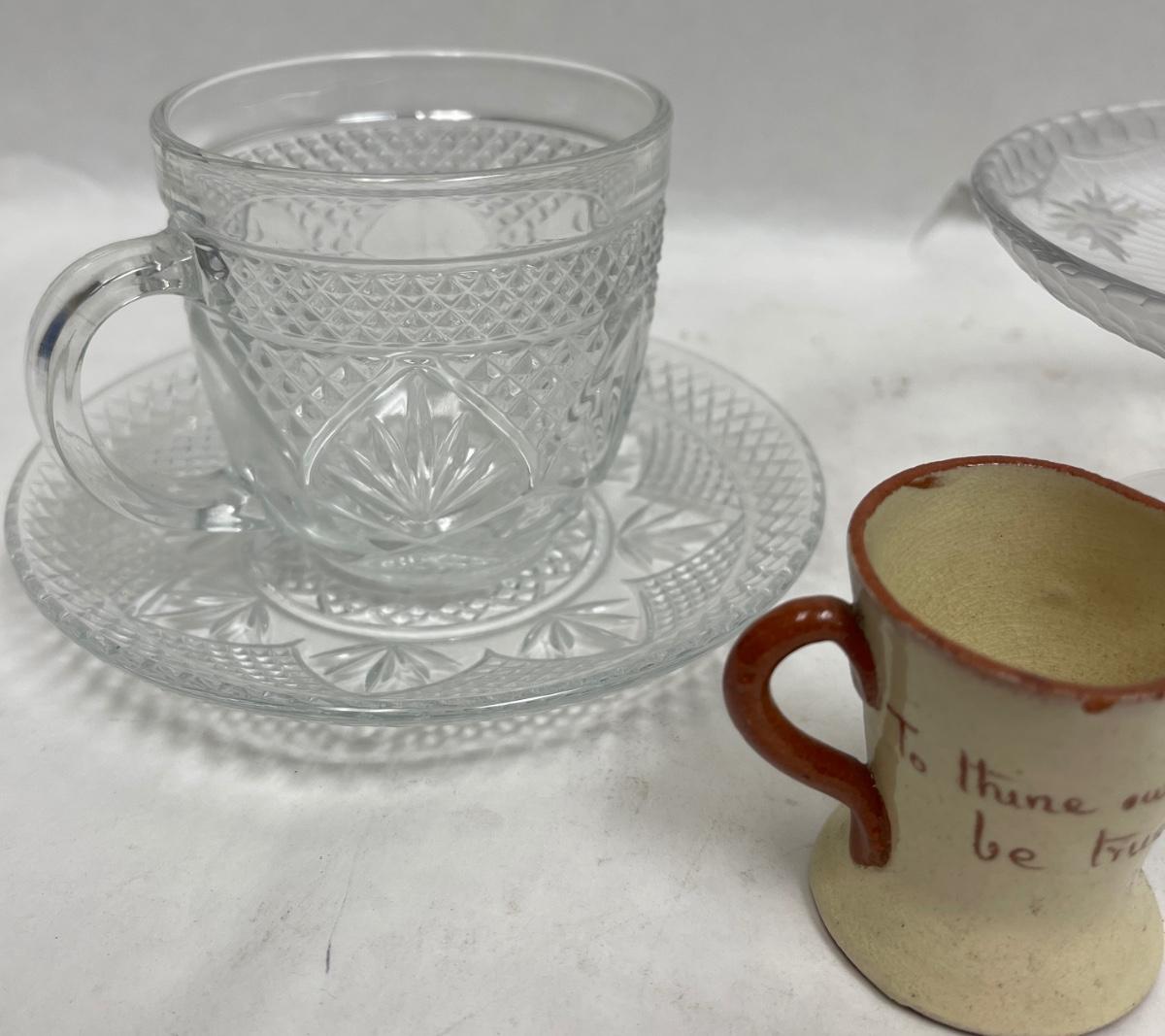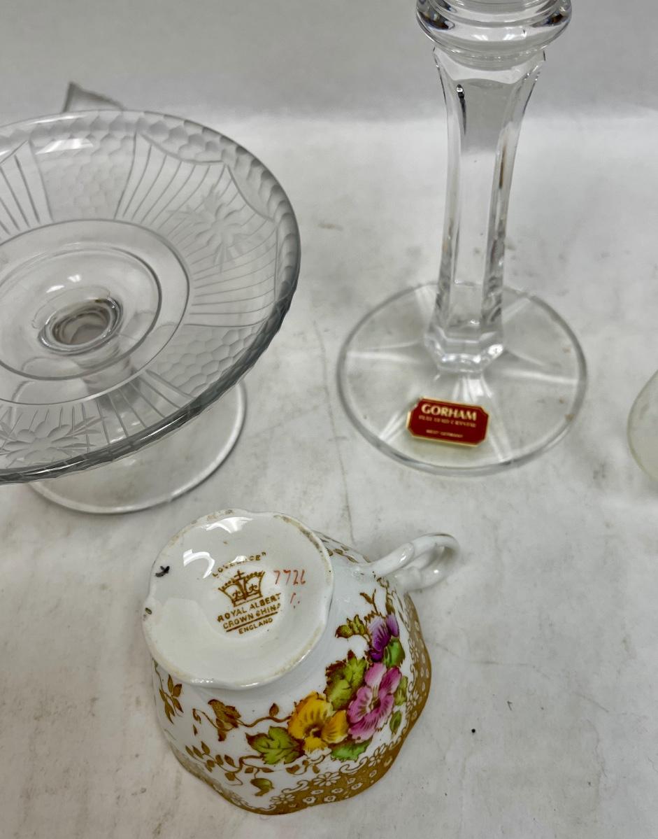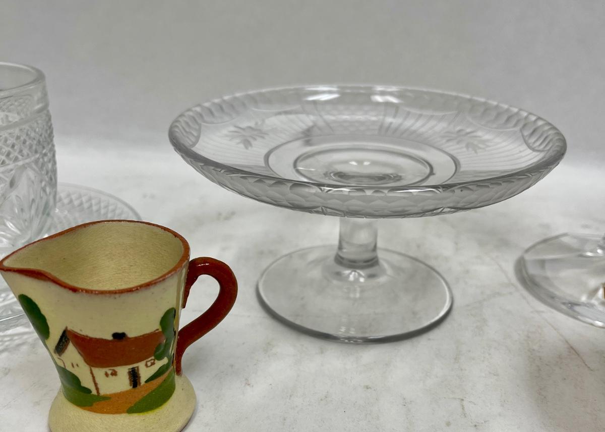 Misc. Vintage Glass, and Ceramic Lot - demitasse cup, mini creamer, mini cake plate, cup & saucer, candlestick holder