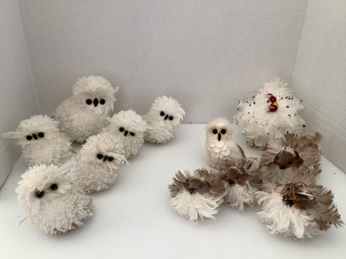 Lot of 7 owls and 5 bird decor