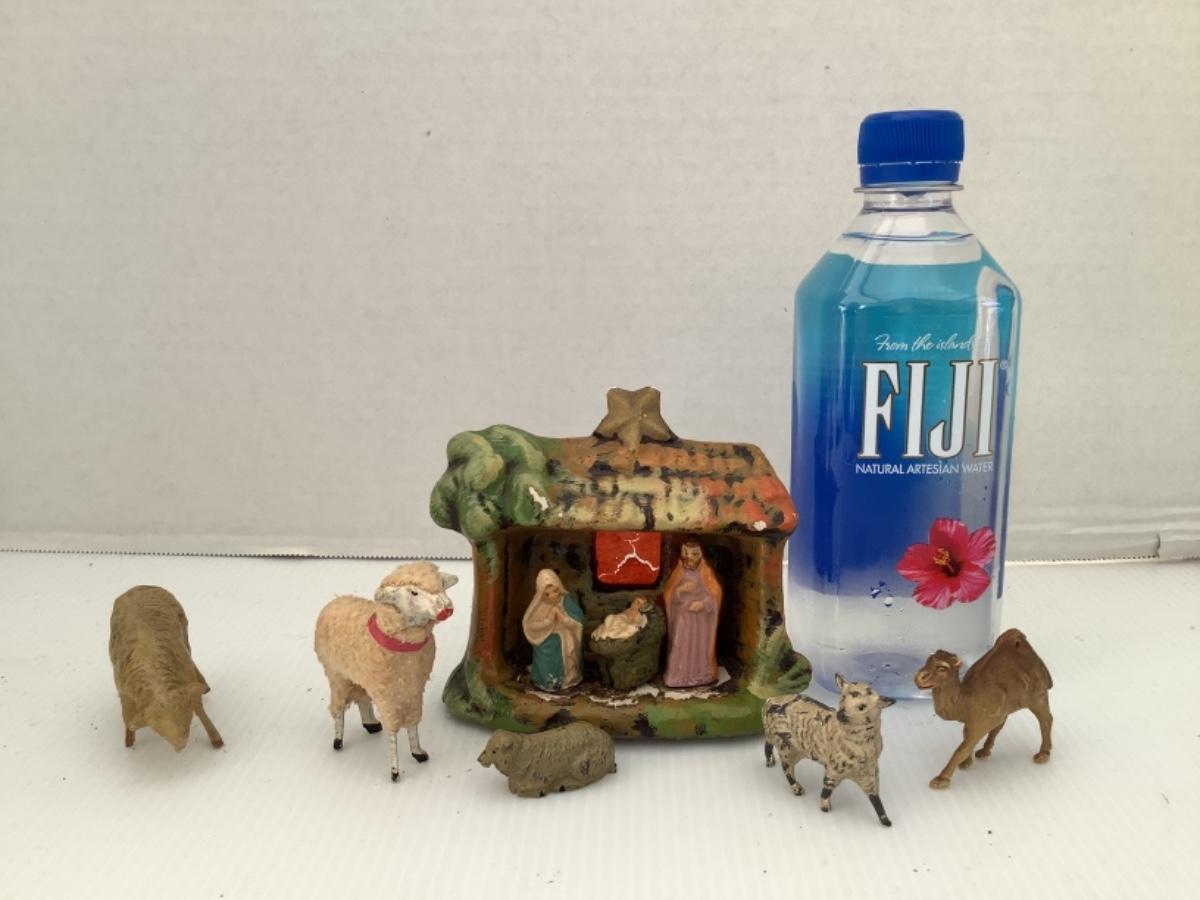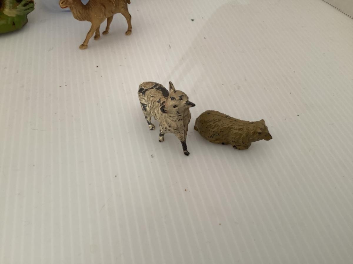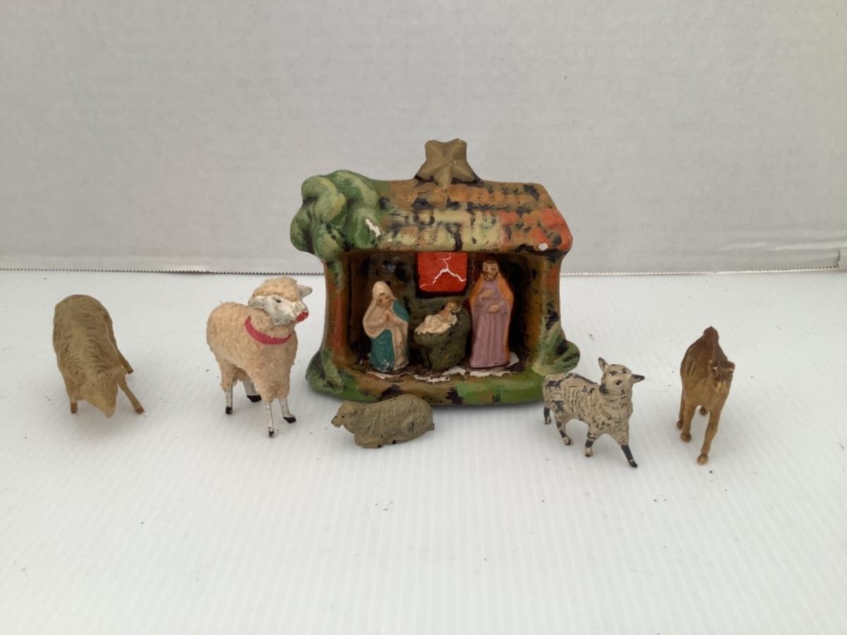 Mixture of vintage plastic and 2 lead animals with plaster Creche and 3 pieces