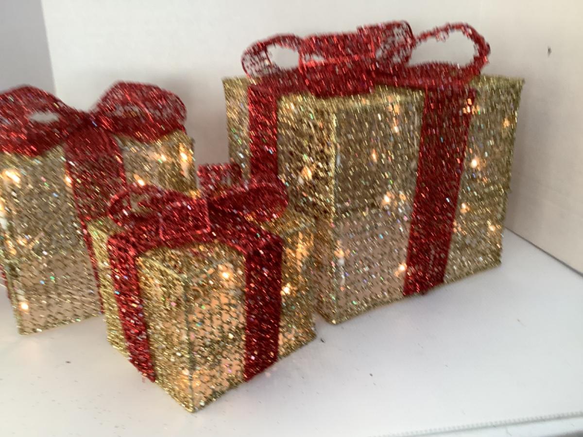 T140 Three Prelit Present Boxes