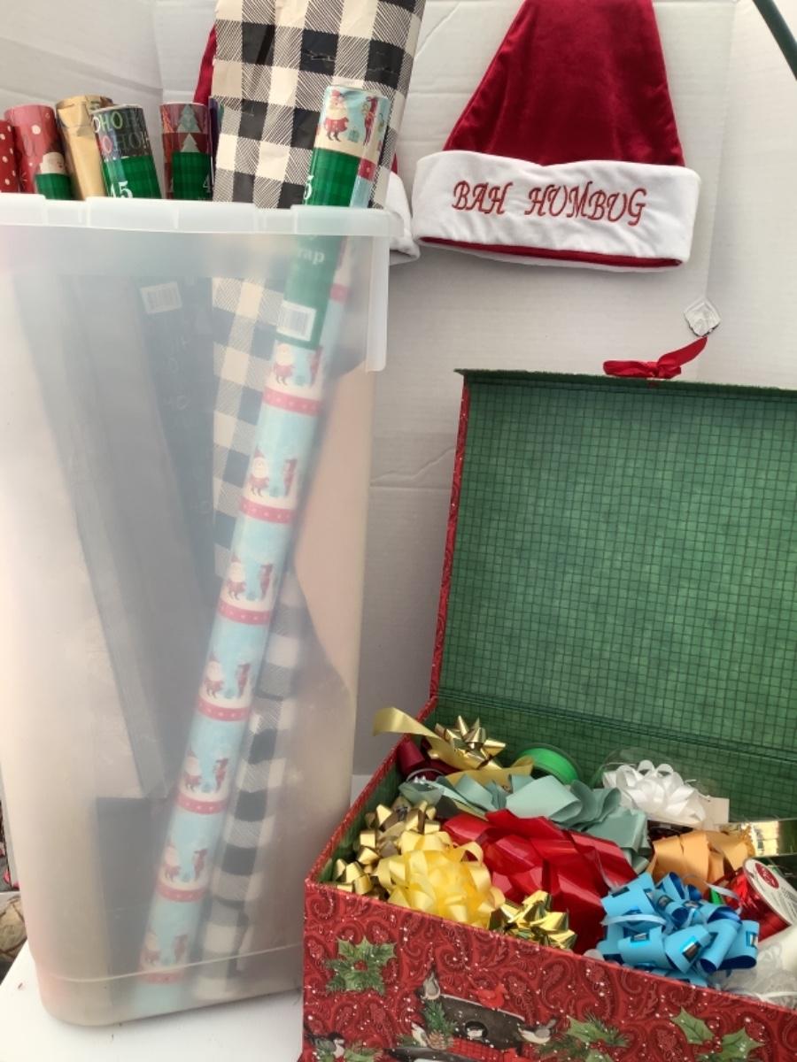 Large lot of wrapping paper of all occasions, Christmas hats, bows and more