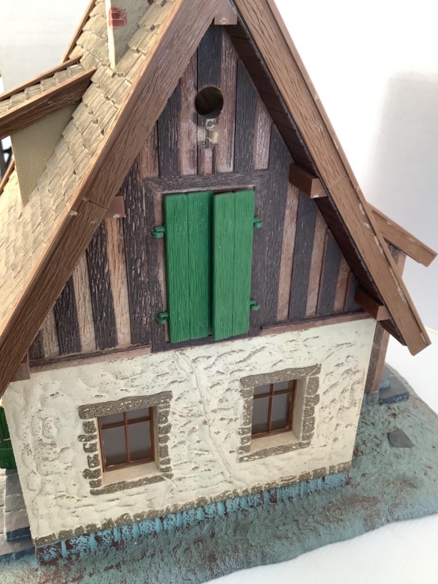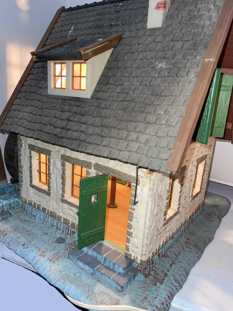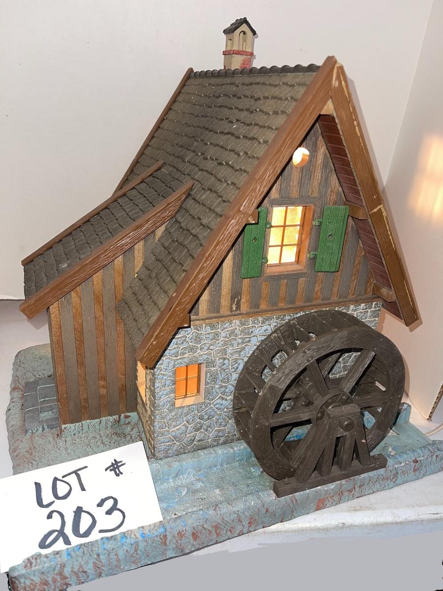 This building originally came with a motor to run water thru the mill. It no longer has this. It has a working light. Measures 16.5” long x 15.75” wide x 15” high