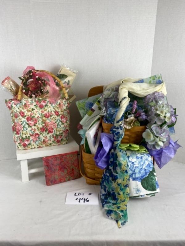 T496 Longaberger Hydrangea and Purse Gift Basket