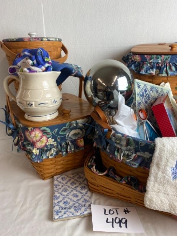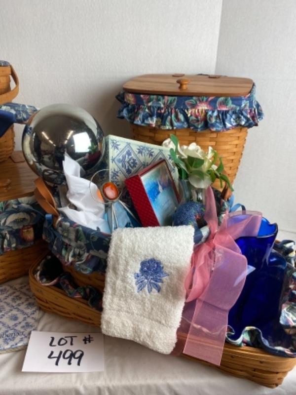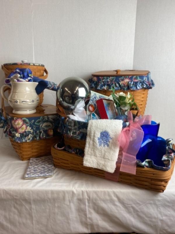 T499 Longaberger 5pc Blue and Ping Gift Basket Lot