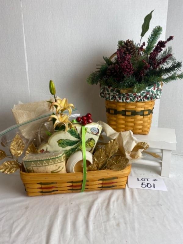 T501 Pair of Longaberger Gift Baskets with Decor