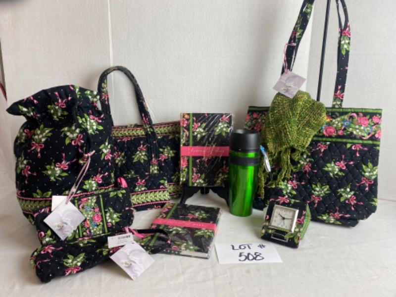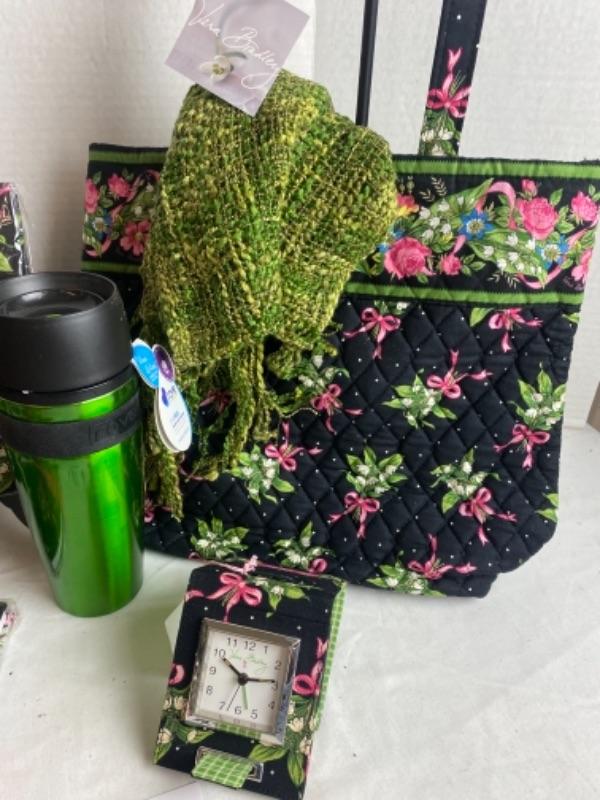 Vera Bradley Newhope gift set including ditty bag, wristlet, journals, coin purse, travel clock, insulated cup and much more