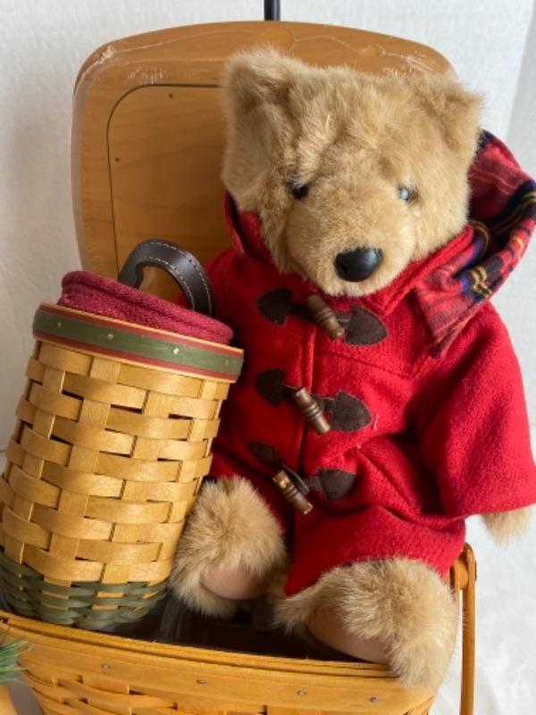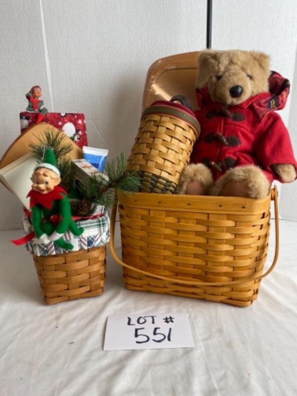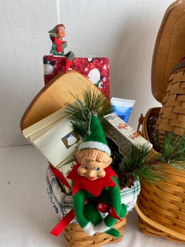 Longaberger Basket gift light with LL Bean bear, elf on the shelf, lotion, ornaments, so, and much more