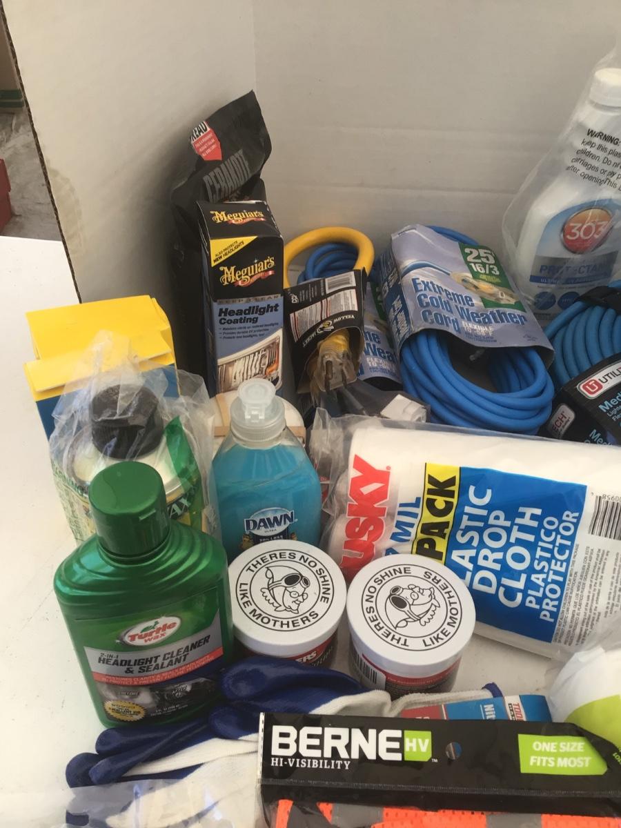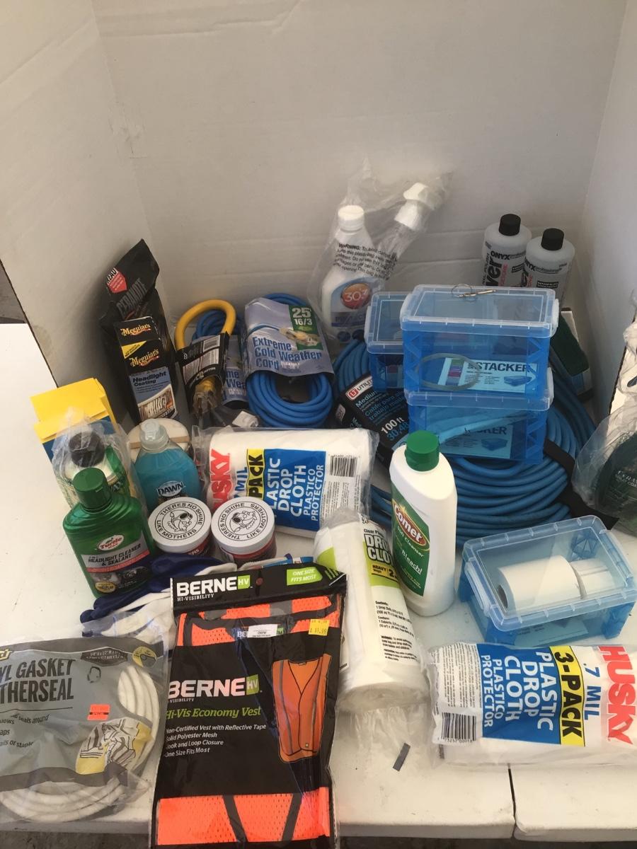 Car Cleaners, House Cleaners, Metal Cleaners, Extension Cords, Drop Cloths, Nail Polish Remove, Pack of Box Cutters, Small Storage Containers