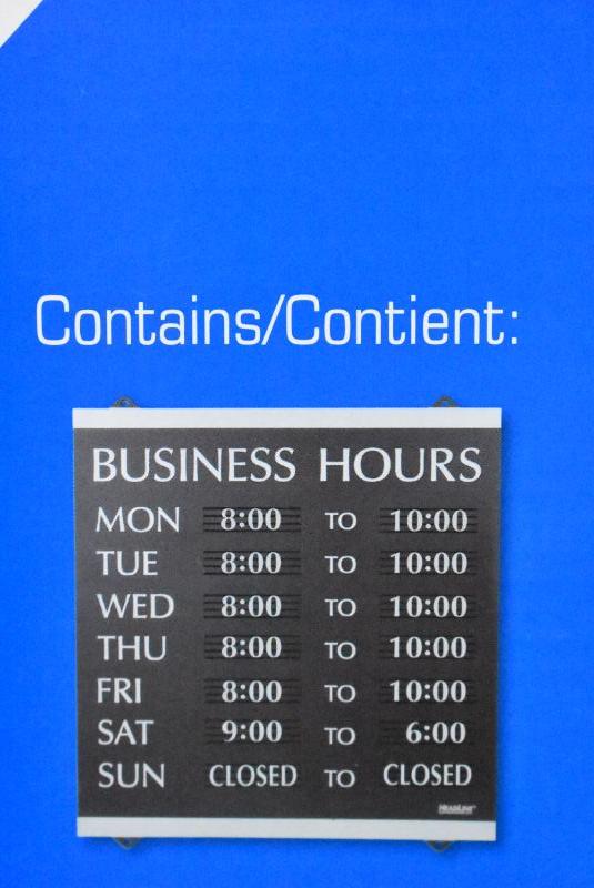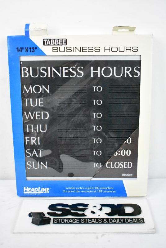 Tabbee Business Hours Sign 14"x13" Includes Suction Cups & 192 Characters - New