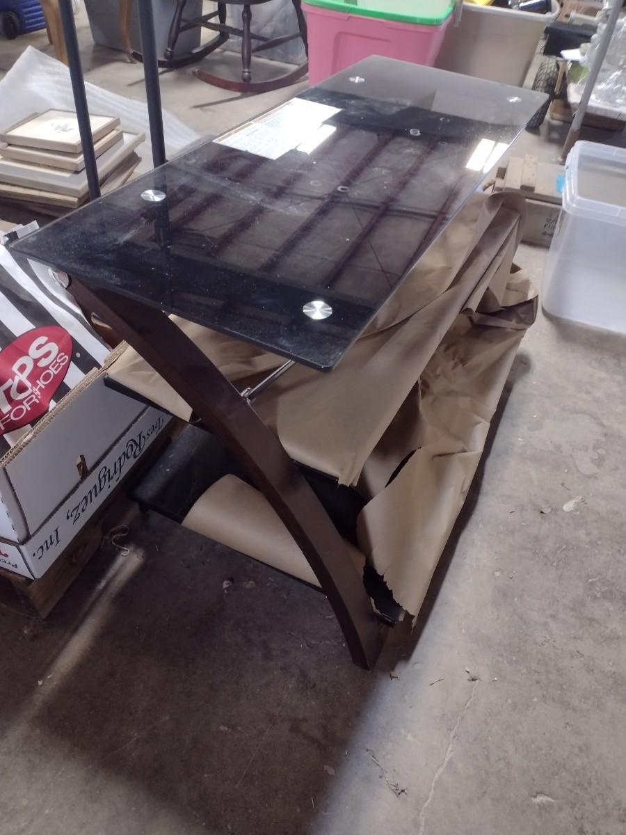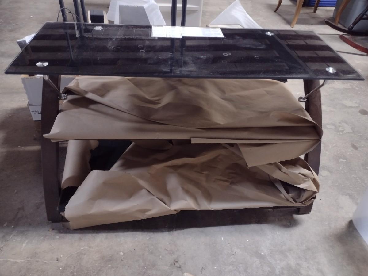 Triple Shelf Media Table Designed for Large Flat Screen TV's Glass Shelves
