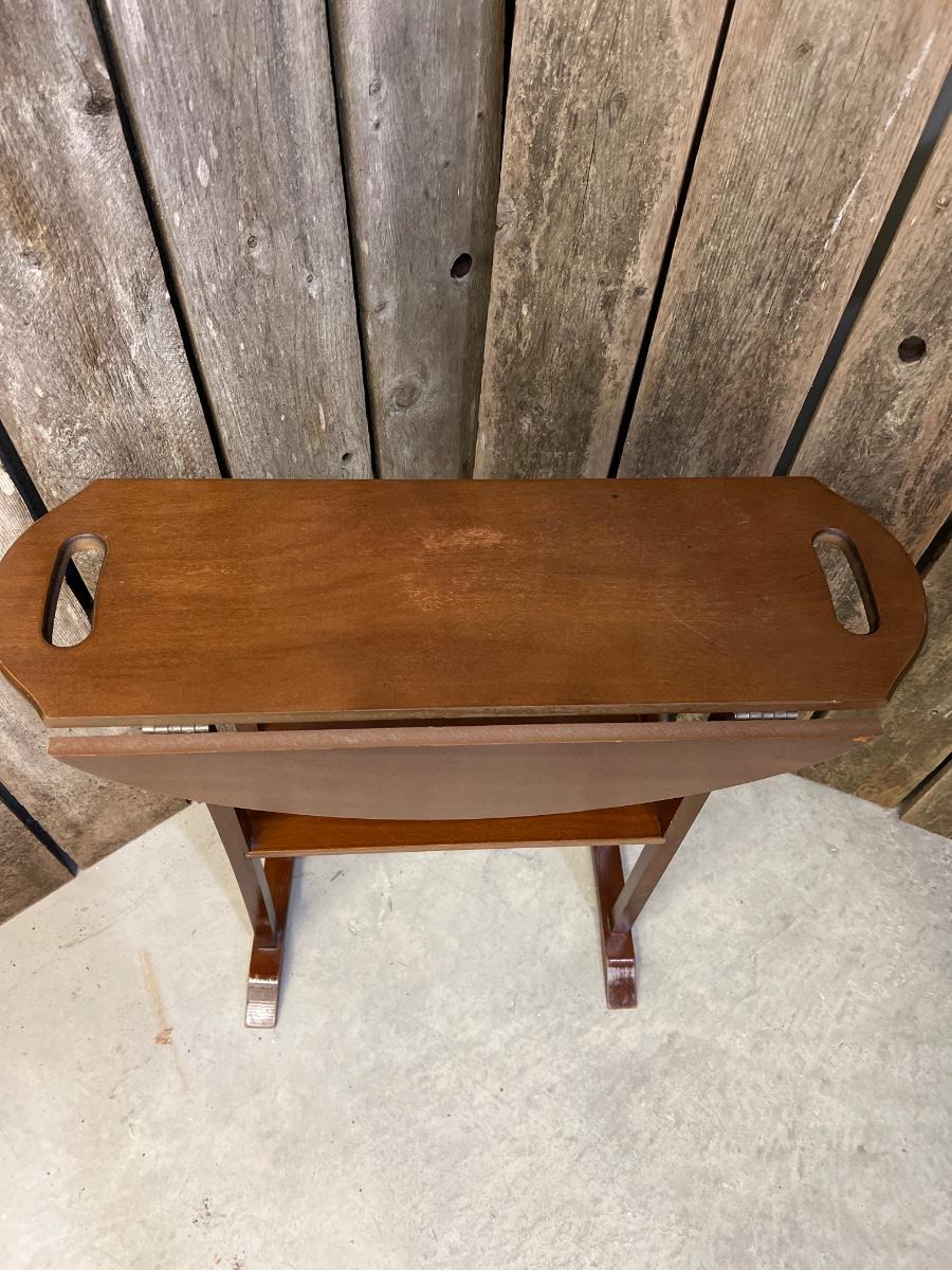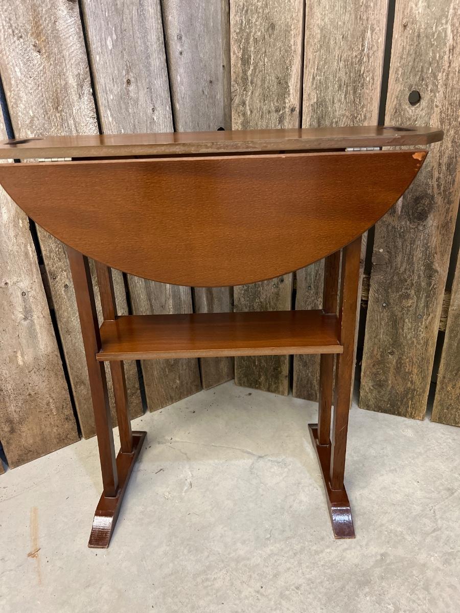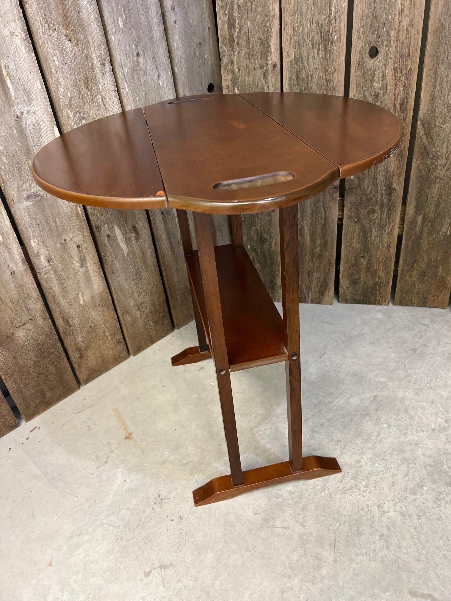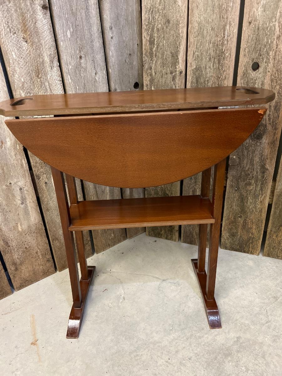 Small Vintage Drop Side Wood Table with Cut Out Handles #2